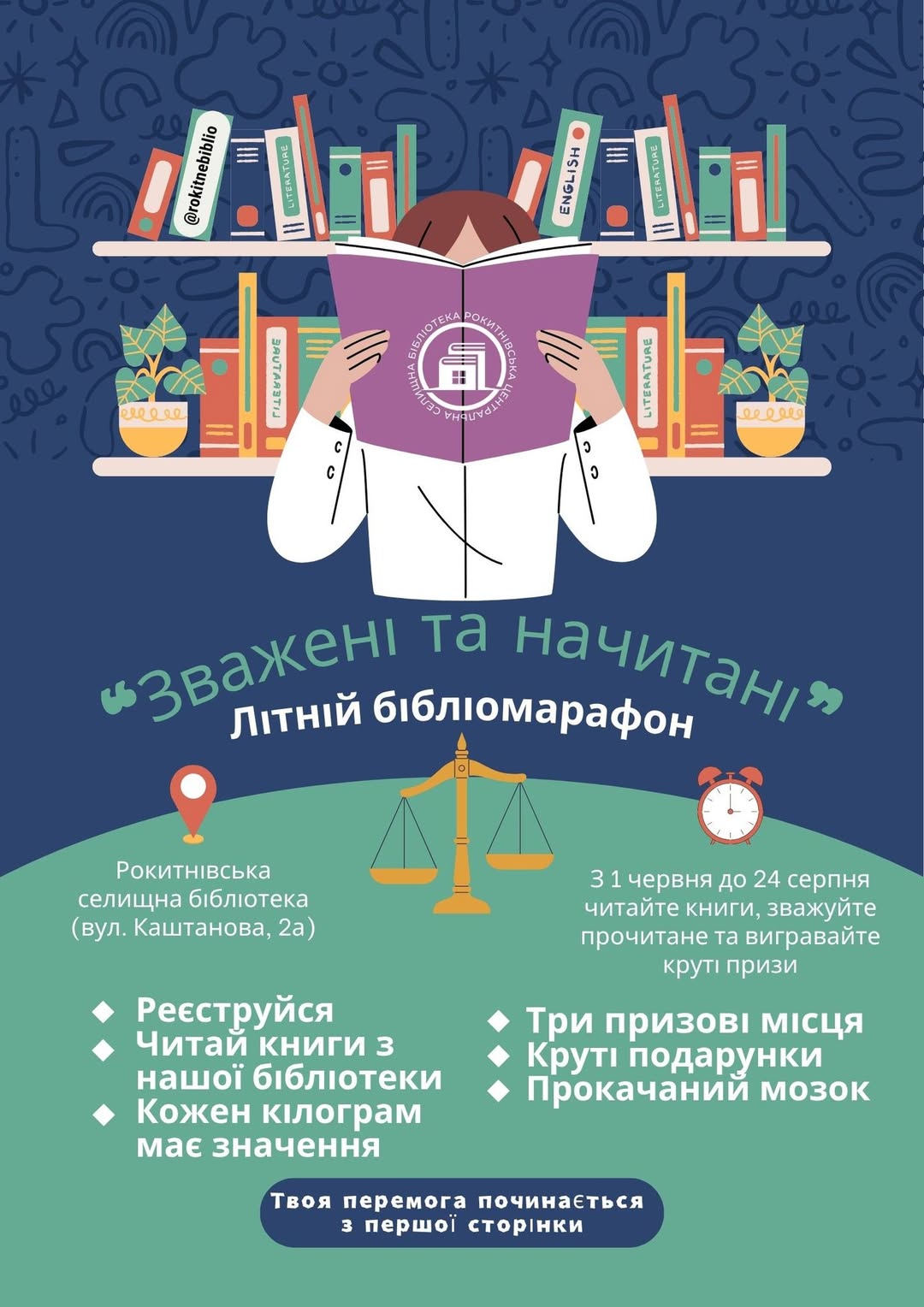 Приєднуйтесь до захопливого літнього бібліомарафону “Зважені та начитані”, який триватиме з 1 червня до 24 серпня! Це чудова можливість поринути у світ літератури, отримати задоволення від читання та виграти цінні призи!