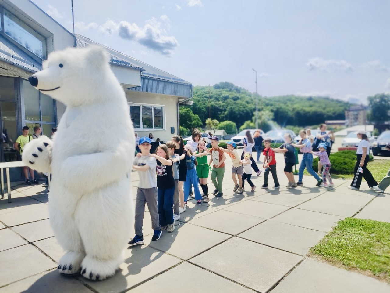А на десерт — сюрприз! До дітей завітав величезний білий ведмедик, ростова лялька, яка щедро ділилася позитивними емоціями, теплими обіймами та, звісно ж, подарунками. Радості дітей не було меж! Вони сміялися, із задоволенням фотографувалися з ведмедиком та ділилися своїми враженнями одне з одним. Щирі дитячі емоції – найкраща нагорода для організаторів.