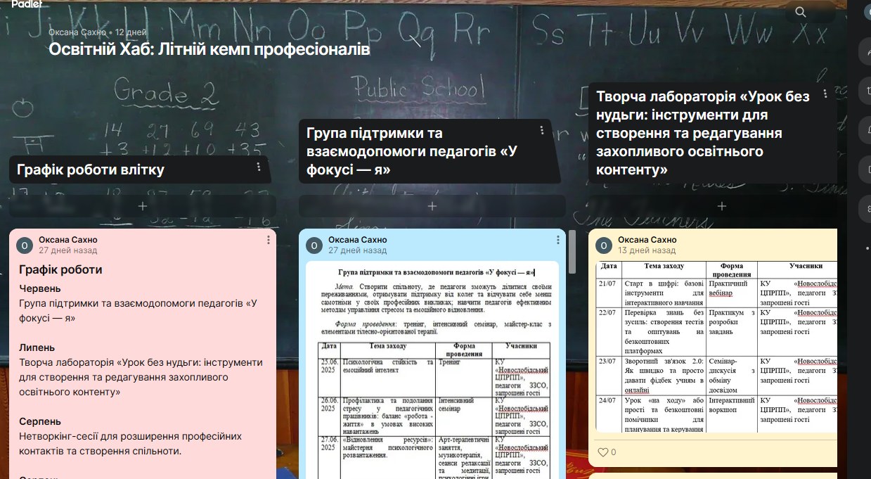 Літо — це не лише час відпочинку, а й відмінна нагода для професійного зростання та генерації нових педагогічних ідей! 21 липня, в межах реалізації проєкту КУ «Новослобідський ЦПРПП» під назвою «Освітній хаб: Літній кемп професіоналів», розпочала свою роботу унікальна творча група. Вона зосереджена на темі «Урок без нудьги: інструменти для створення та редагування захопливого освітнього контенту». На першій зустрічі взяли участь 15 досвідчених учителів із закладів загальної середньої освіти Новослобідської громади. Вони прагнуть трансформувати навчальний процес, зробивши його більш інтерактивним та ефективним.