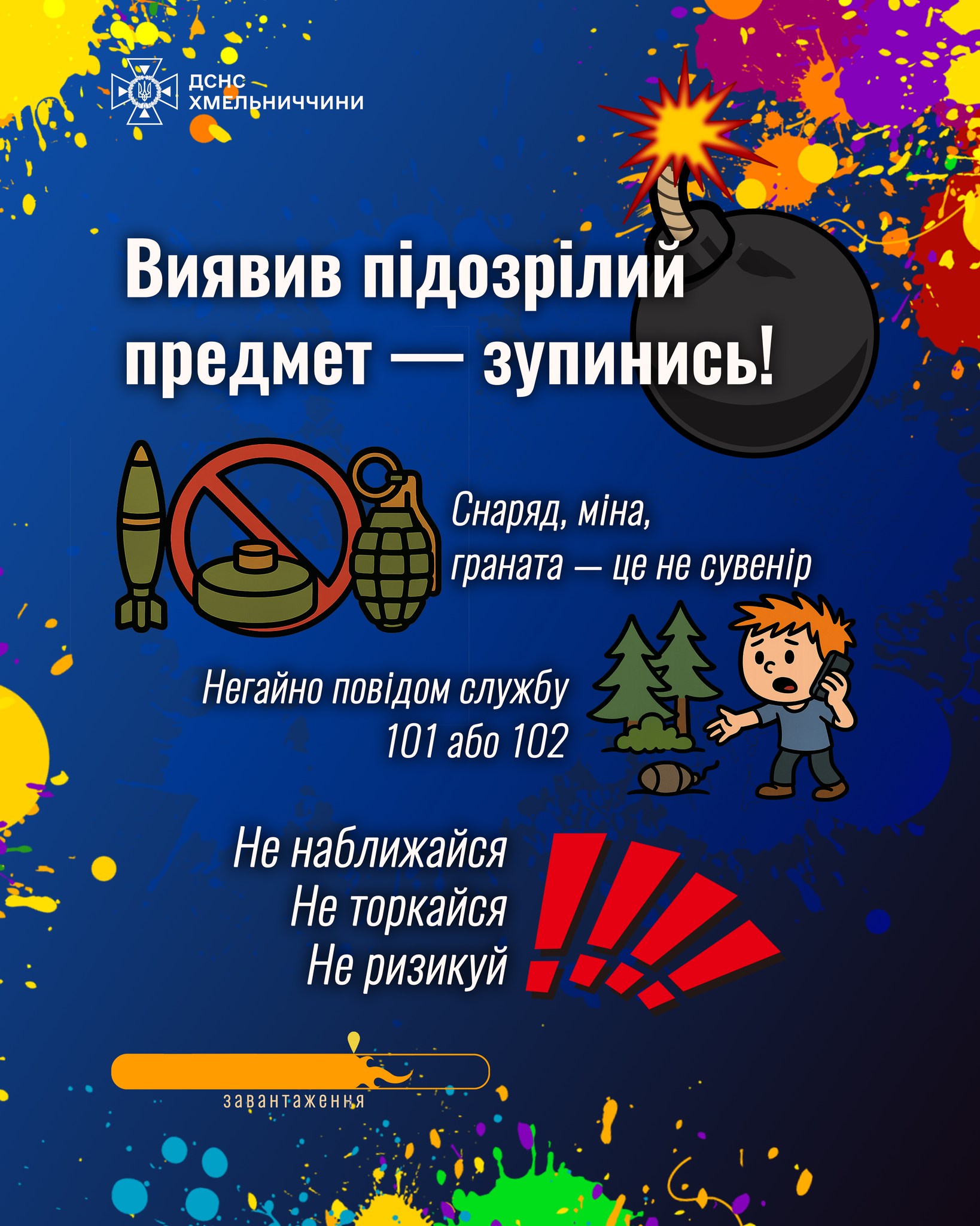 • Не намагайтеся самостійно знешкоджувати вибухонебезпечні предмети. Це надзвичайно небезпечно і може призвести до трагічних наслідків.