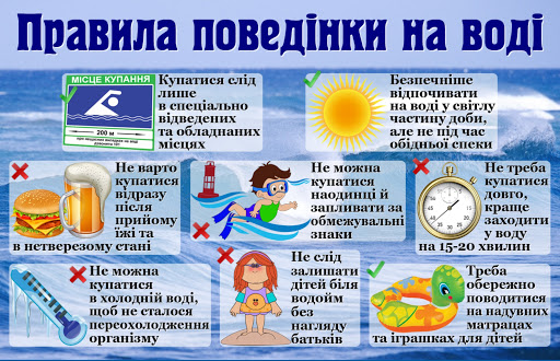 Дотримання цих простих, але дуже важливих правил поведінки на воді дозволить вам та вашим близьким насолоджуватися літніми днями безпечно та безтурботно. Пам’ятайте, що відповідальність за власну безпеку та безпеку оточуючих лежить на кожному з нас. Будьте уважні, обережні та розсудливі, і нехай ваш відпочинок біля водойм буде сповнений лише приємних емоцій.