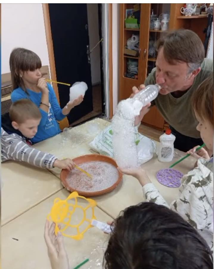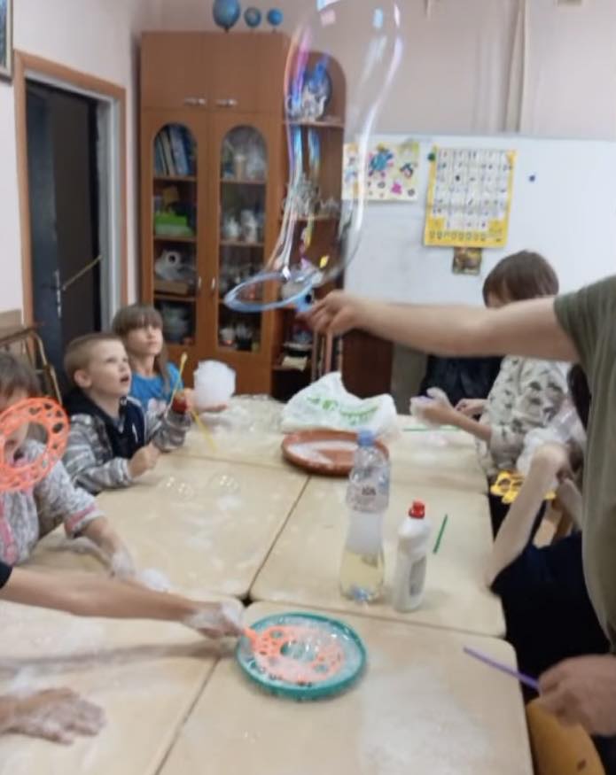 👫Діти з захопленням спостерігали, як народжуються гігантські різнобарвні бульбашки, вчилися створювати дивовижні форми й навіть відкривали для себе маленькі наукові секрети.