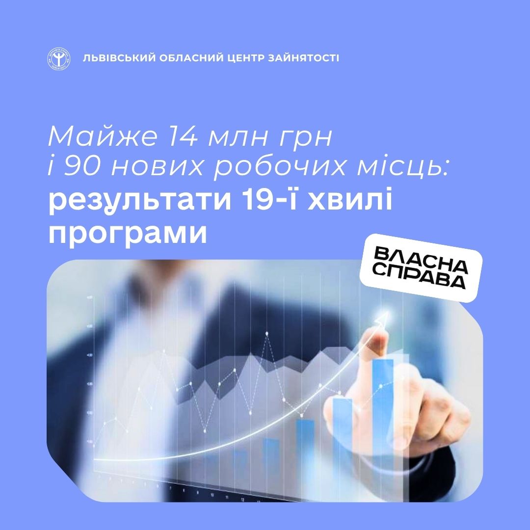 📢📈 Майже 14 мільйонів гривень та 90 нових робочих місць: результати 19-ї хвилі програми «Власна справа» на Львівщині.