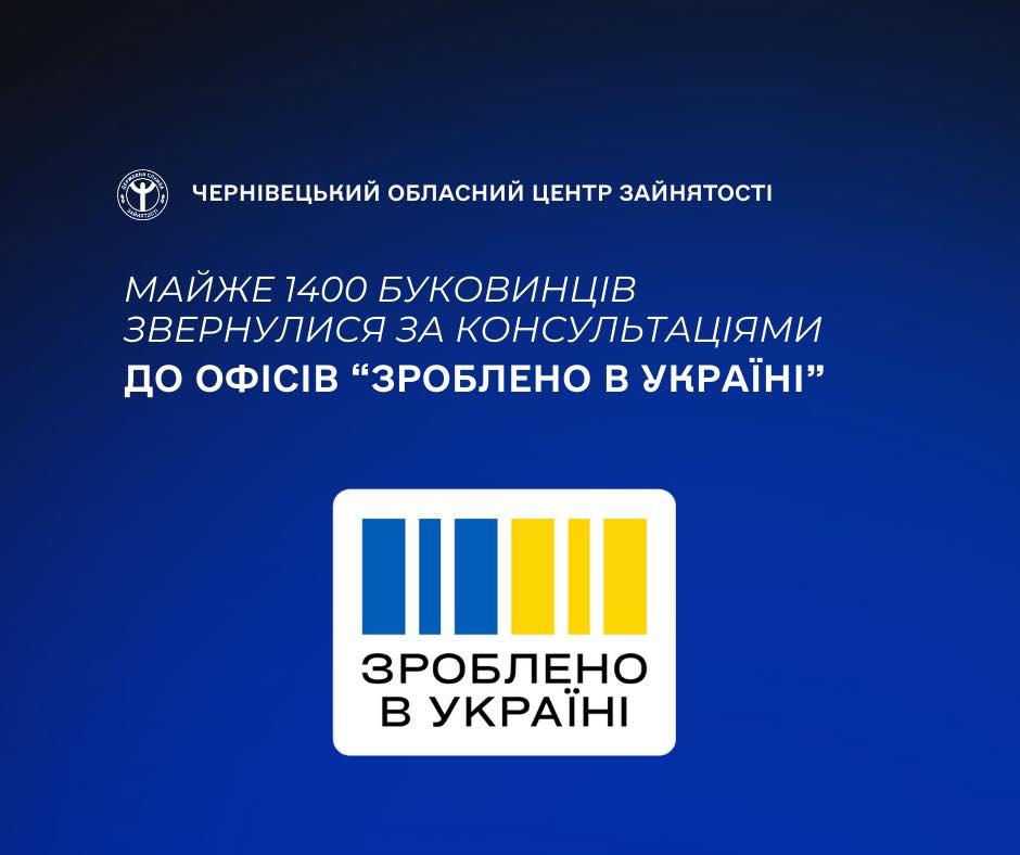 Майже 1400 буковинців звернулися за консультаціями до офісів «Зроблено в Україні», які надають комплексну підтримку для створення та розширення бізнесу. Від минулого року в Чернівецькій області на базі структурних підрозділів Чернівецького обласного центру зайнятості ефективно функціонують чотири офіси «Зроблено в Україні» – у Чернівцях, Вижниці, Хотині та Глибокій. Ці локації стали ключовими центрами допомоги для місцевих підприємців.