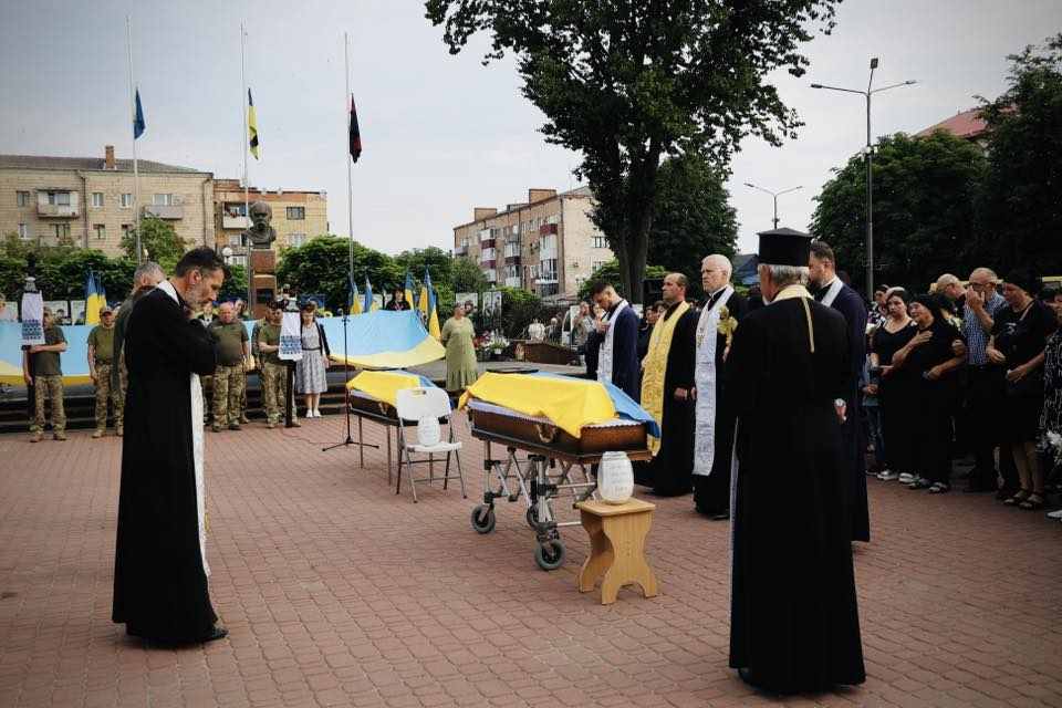 Після загальної церемонії траурні кортежі вирушили до рідних сіл воїнів, де відбулися церковні й родинні прощання, молитви, траурні ходи та поховання.