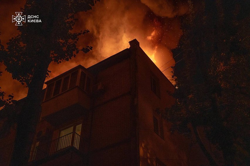 Крім ударів по залізничній інфраструктурі, того ж дня, близько 3-ї години ночі, у Києві сталася масштабна пожежа. Займання виникло на покрівлі житлового будинку на вулиці Щербаківського, охопивши площу понад 1500 м². Завдяки швидкому реагуванню пожежних служб та евакуації 150 мешканців, вдалося уникнути постраждалих. Для підтримки мешканців, які були евакуйовані, неподалік, у школі №175, було організовано пункт допомоги.