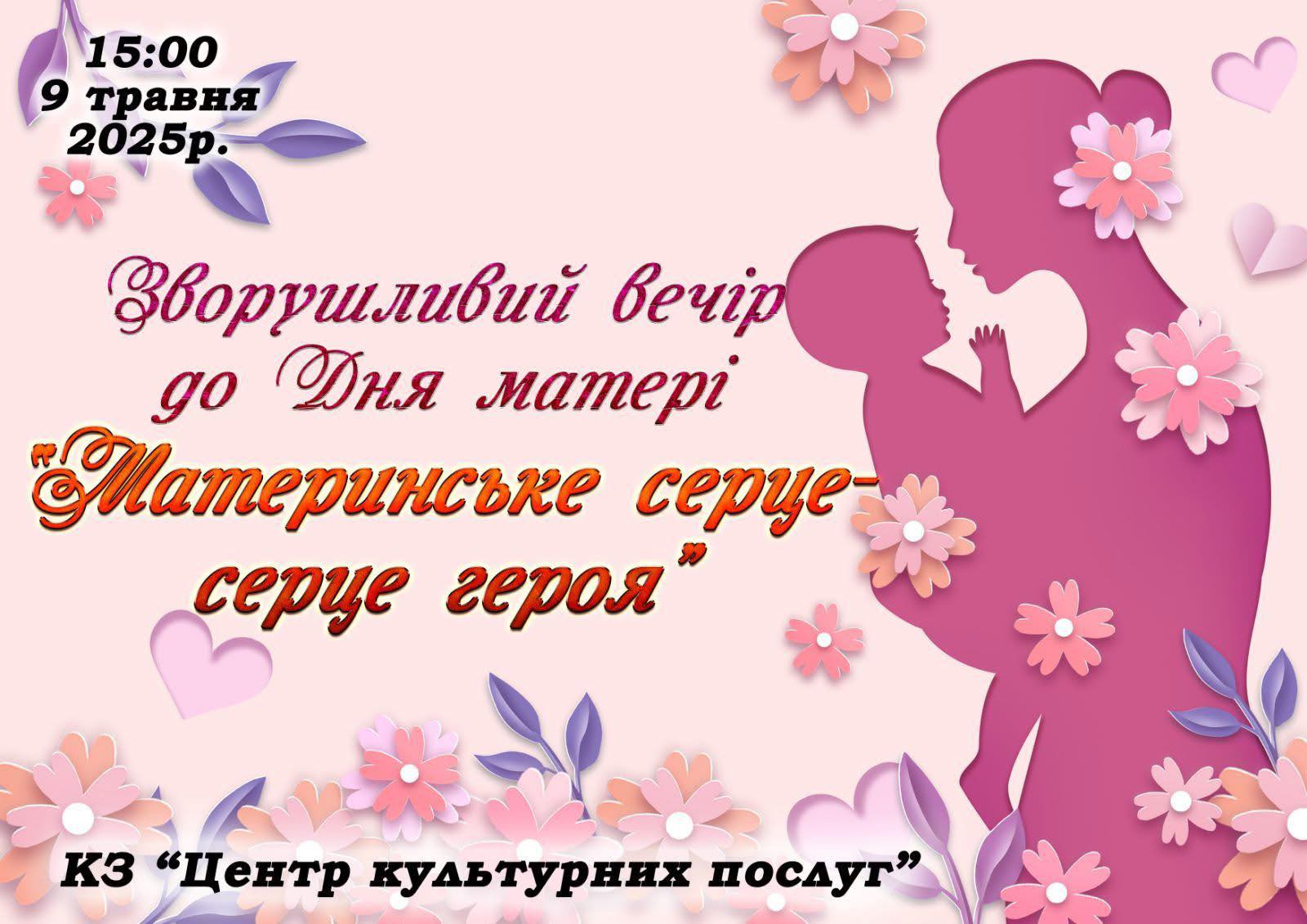 «Материнське серце — серце Героя» – це вечір, який подарує вам багато позитивних емоцій та теплих спогадів. Приходьте та розділіть з нами цей особливий день. Ваша присутність зробить його ще більш значущим і незабутнім.