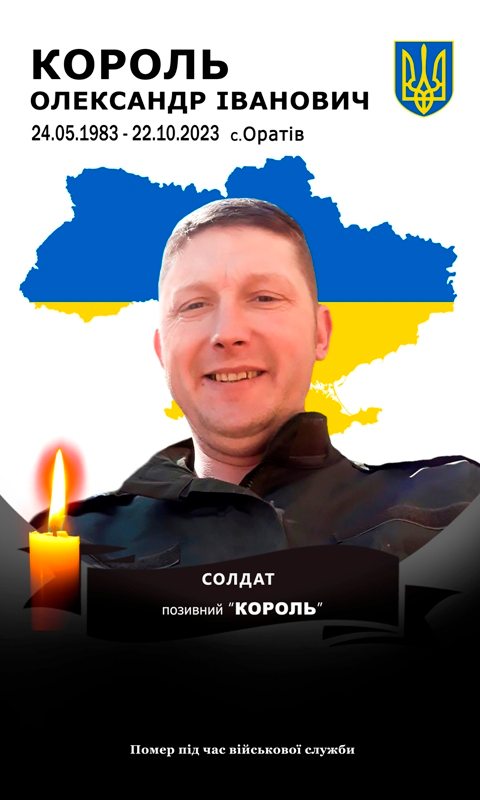 Олександр Король був незламним борцем не лише на полі бою, а й у боротьбі за мирне життя українців, за звільнення рідної землі від рашистської нечисті. На жаль, доля виявилася жорстокою, і воїн також вів боротьбу з важкою недугою, спричиненою наслідками війни. На жаль, в останньому бою із хворобою, мужній боєць не вистояв. Він назавжди залишиться 40-річним у пам’яті своєї люблячої дружини, турботливої донечки, рідних, вірних друзів, односельців та усієї громади, яка глибоко сумує за втратою. Вічна і світла пам’ять бійцю Небесного строю.