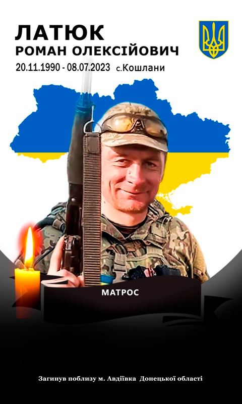 В одній із найгарячішіх точок бойових дій під Авдіїівкою він пройшов бойове хрещення пеклом війни. Вона несправедливо і жорстоко обірвала життєвий шлях матроса Латюка Романа на 23-му році життя. 8 липня він загинув під час виконання бойового завдання поблизу Авдіївки Покровського району Донецької області.