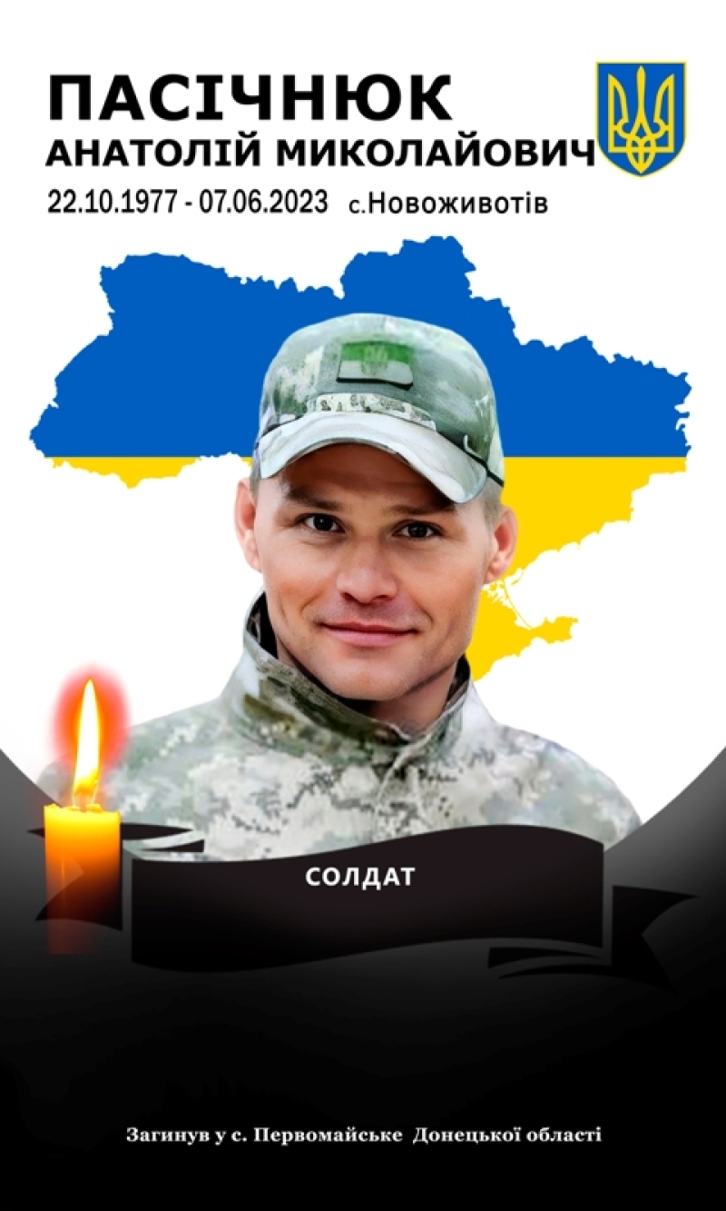 Два роки несе небесну службу ПАСІЧНЮК Анатолій Миколайович (22.10.1977- 07.06.2023) із с. Новоживотів. Два роки не втихає біль утрати сина, чоловіка, батька. Анатолій Пасічнюк був людиною чистої душі, щирим, доброзичливим, справедливим, працелюбним і відповідальним. Він любив Україну, рідний край, Оратівську землю. Як патріот, став на захист держави, сумлінно виконуючи обов’язок. Анатолій Пасічнюк героїчно загинув під час виконання бойового завдання у штурмовому бою під Покровськом в районі Первомайська Донецької області. Вічна пам’ять Герою!