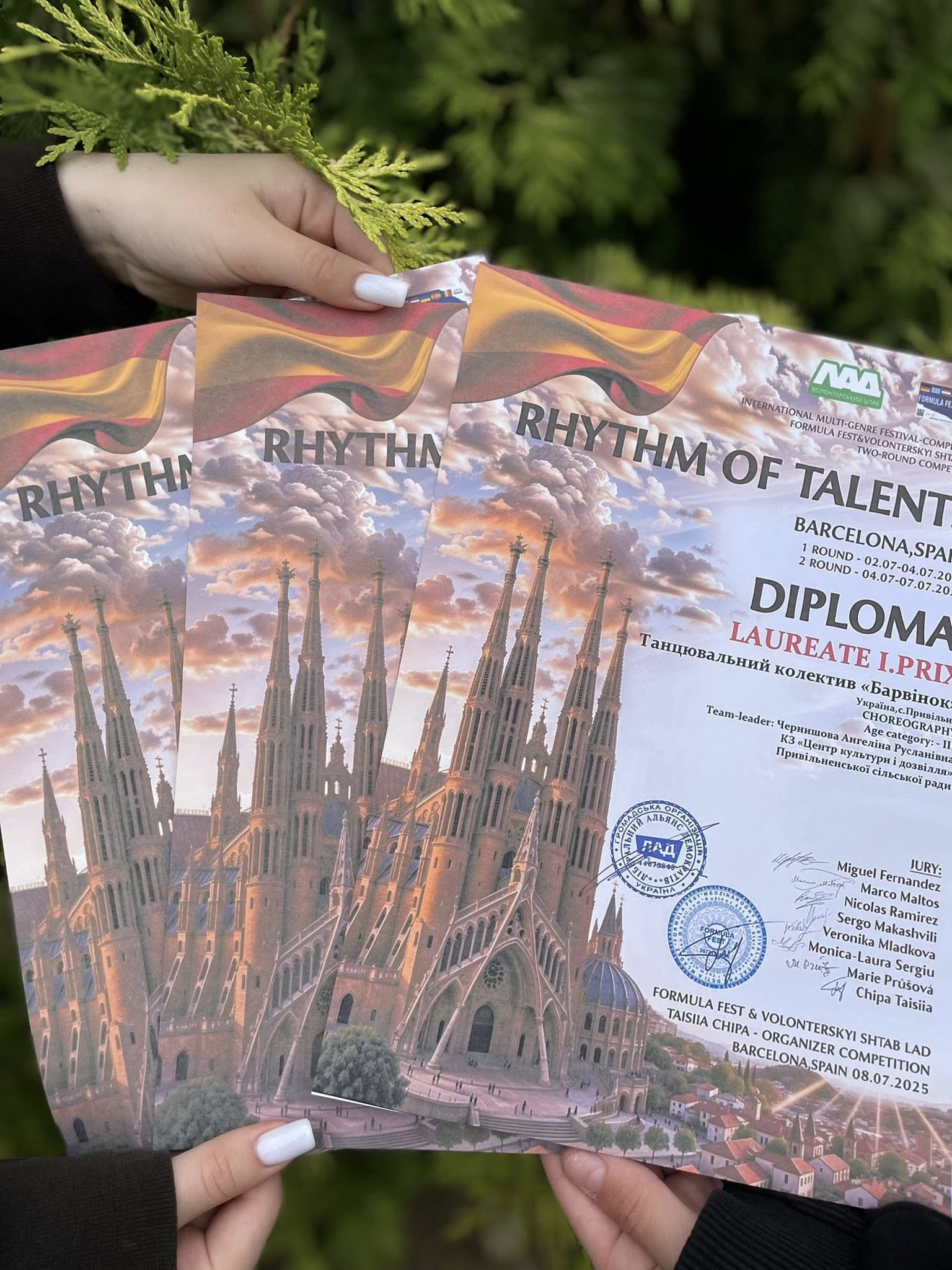 Маємо надзвичайний привід для гордості та справжньої радості у громаді Привільного! Талановиті учасники танцювального колективу «Барвінок» з Комунального закладу «Центр культури і дозвілля» села Привільне продемонстрували вражаючі результати на міжнародній арені. Наші наймолодші вихованці, а також учасники середньої групи, стали лауреатами 2-го 🥈 та 1-го 🥇 ступенів у Міжнародному благодійному двотуровому конкурсі мистецтв «RHYTHM OF TALENTS», що відбувся 02-07 липня 2025 року. Цей грандіозний успіх танцювального колективу «Барвінок» є яскравим свідченням наполегливої праці, таланту та високого рівня підготовки. Досягнення на міжнародному конкурсі такого рівня є визначною подією не лише для самого колективу та його керівників, а й для всього села Привільне. Ці перемоги підтверджують, що українські таланти здатні сяяти на світовій сцені, навіть у такий непростий час. Участь у подібних заходах надає молодим артистам безцінний досвід, мотивує їх до подальшого розвитку та відкриває нові горизонти у світі мистецтва. Танцювальний колектив «Барвінок» постійно працює над вдосконаленням своїх навичок, опановуючи нові стилі та техніки, що безумовно відображається у їхніх виступах. Окремої подяки та визнання заслуговують організатори конкурсу та партнери, які сприяють розвитку української культури та надають можливість молодим талантам проявити себе. Міжнародний благодійний конкурс «RHYTHM OF TALENTS» є важливою платформою для обміну досвідом та демонстрації майстерності. Підтримка таких ініціатив з боку «Волонтерського штабу «Лад» та Громадської організації «ФОРМУЛА УСПІХУ» є надзвичайно цінною. Саме завдяки спільним зусиллям та вірі в український потенціал можливі такі значні культурні досягнення. Успіхи танцювального колективу «Барвінок» на конкурсі мистецтв стали джерелом неабиякого натхнення для всієї місцевої громади Привільного. Це не просто нагороди, це символ стійкості, краси та непереможності українського духу. Кожен виступ, кожне тренування, кожен рух на сцені – це відображення безмежної любові до танцю та мистецтва. Ми пишаємося кожним учасником цього чудового колективу, який продовжує прославляти Привільне та Україну своїми виступами. Цікаво, що цей міжнародний конкурс не лише виявляє таланти, а й має благодійну мету, що додає ще більшої значущості перемогам «Барвінка». Участь у таких подіях – це не тільки змагання, а й внесок у спільну справу добра та підтримки. Колектив «Барвінок» вже багато років є важливою частиною культурного життя Привільного, виступаючи на місцевих святах та заходах, завжди радуючи глядачів своїми яскравими та емоційними номерами. Їхній професіоналізм та відданість справі є прикладом для наслідування. Сподіваємося на нові звершення та перемоги в майбутньому, адже потенціал колективу «Барвінок» безмежний. Вони доводять, що з наполегливістю та пристрастю можна досягти будь-яких висот. Пишаємося своїми учасниками ❤️