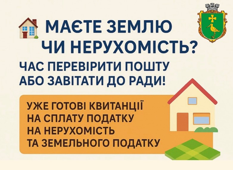 🧾Уже готові квитанції на сплату податку на нерухомість та земельного податку.