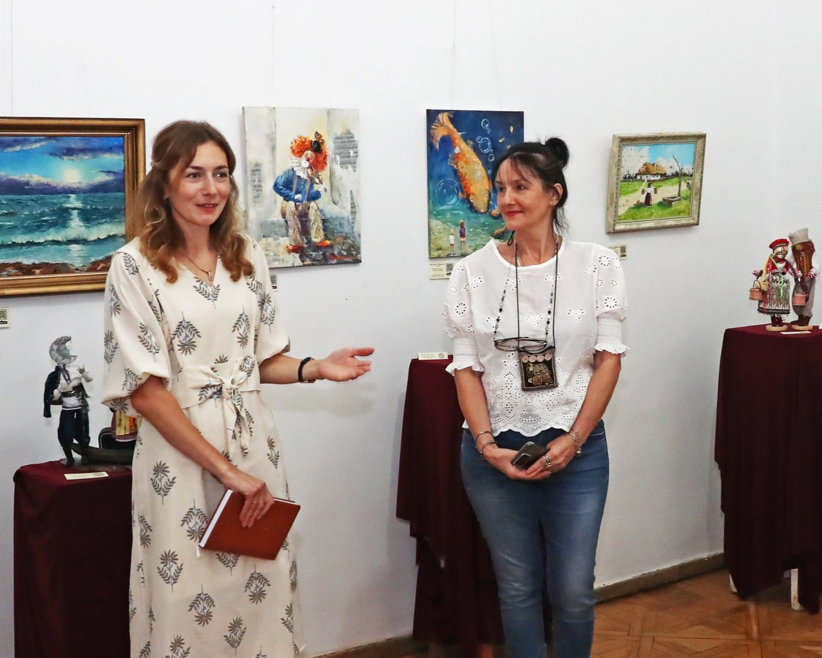 Відкрила виставку та привітала гостей завідувачка відділу європейського мистецтва Леся Хомич. Про ідею проєкту присутнім розповіли організатори – Наталія Івженко та Ольга Черних, а також учасниці Зінаїда Банах та Мілена Коломієць. Майстрині демонстрували свої, а також роботи інших лялькарок.