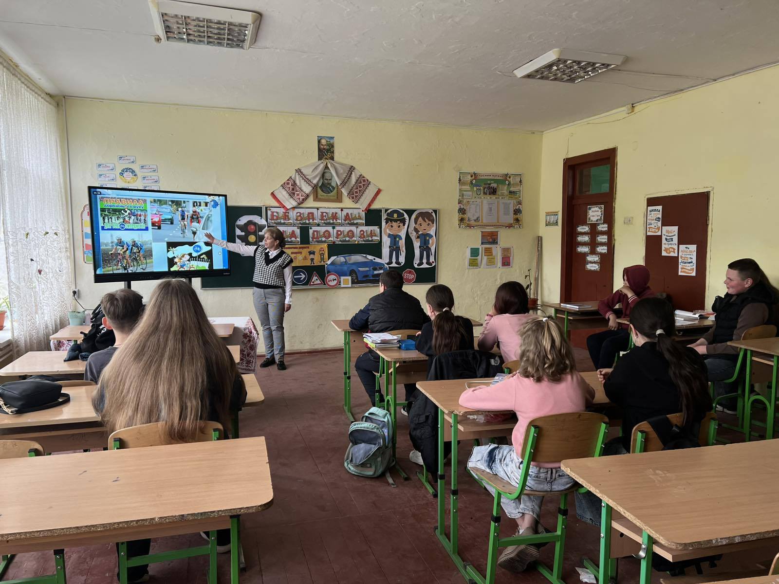 Особливу увагу було приділено практичним аспектам безпеки на дорозі. Учні отримали цінні поради щодо переходу проїзної частини, використання світловідбиваючих елементів на одязі та важливості дотримання правил під час керування велосипедом. Ми наголосили на необхідності бути уважними та обережними, особливо в місцях з інтенсивним рухом транспорту.