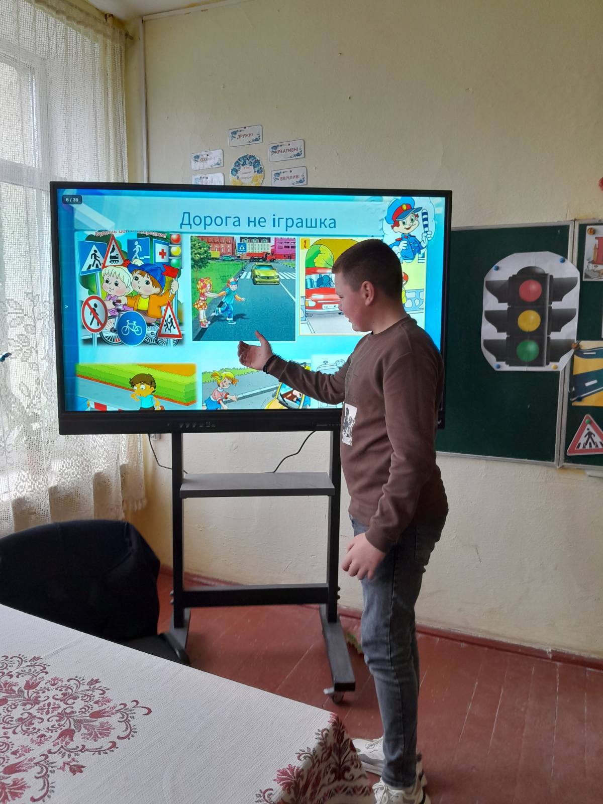 Під час інтерактивного заняття учні активно обговорювали ключові правила дорожнього руху для пішоходів, велосипедистів та пасажирів. Для кращого засвоєння матеріалу ми переглянули пізнавальні тематичні відеоматеріали, а також провели захопливу вікторину. Учні старанно аналізували різноманітні небезпечні ситуації, які можуть виникнути на дорозі, шукаючи шляхи їхнього вирішення.