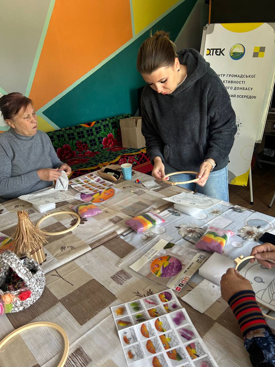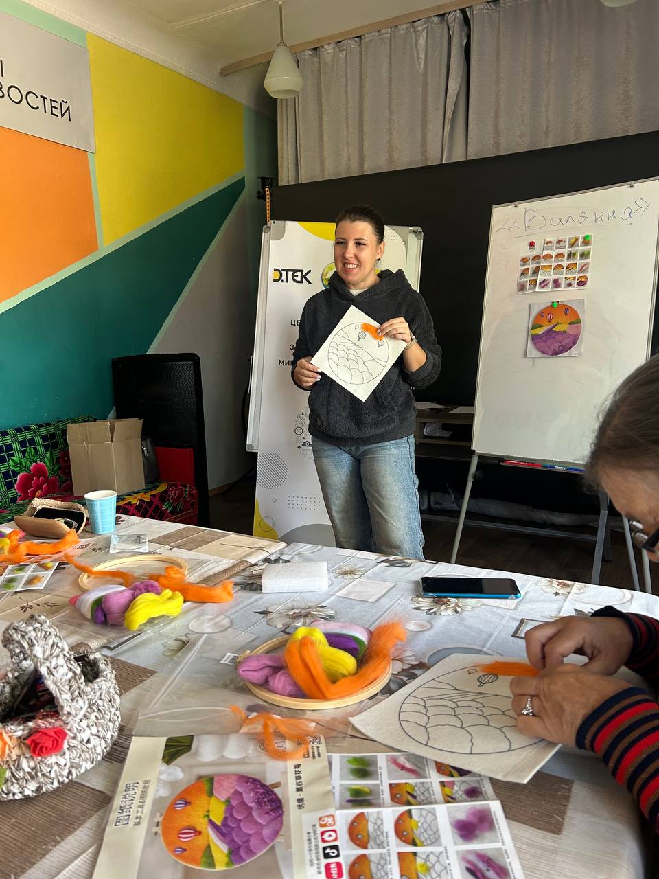 Сухе валяння – це дивовижна техніка, яка дозволяє створювати об’ємні іграшки, прикраси, декоративні елементи та багато іншого з натуральної вовни. Процес вимагає терпіння та акуратності, але результат завжди вражає своєю унікальністю та красою. Учасниці майстер-класу з захопленням працювали з шерстю, формуючи з неї різноманітні вироби, які стали не лише чудовим декором, але й символом їхньої творчої енергії та незламності духу. Кожна створена річ – це маленька історія, в яку вкладена душа майстрині.