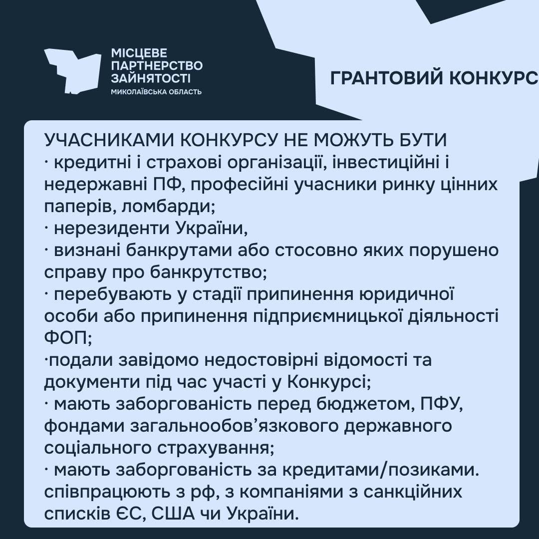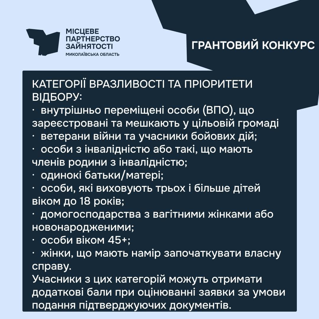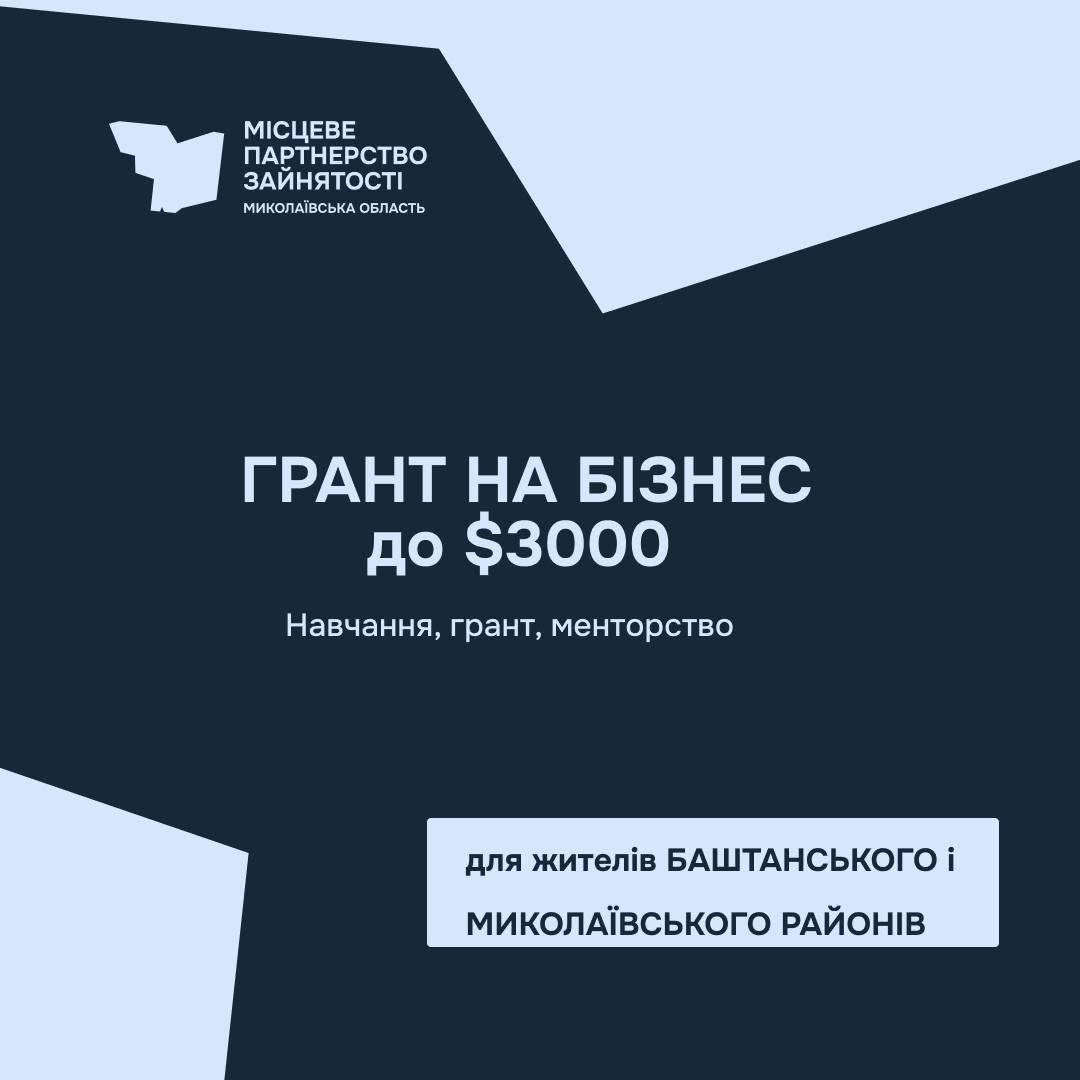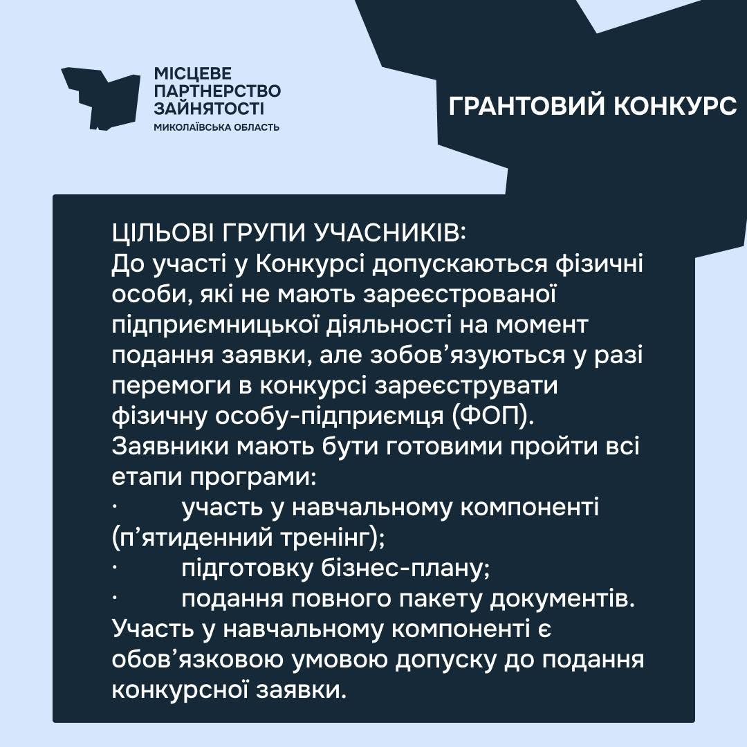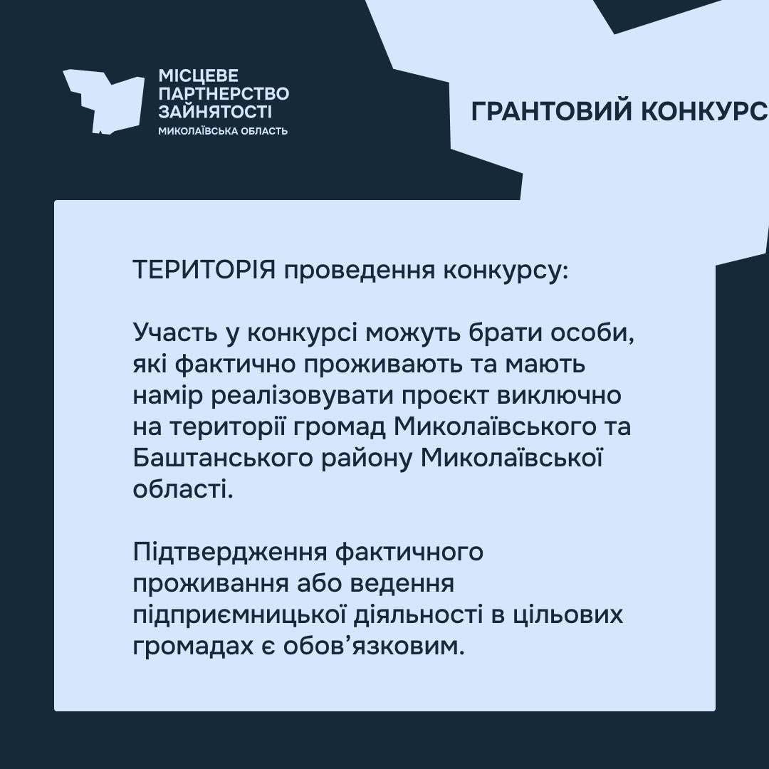 📍 Участь доступна лише для мешканців Миколаївського та Баштанського районів, які планують вести бізнес у своїй громаді.