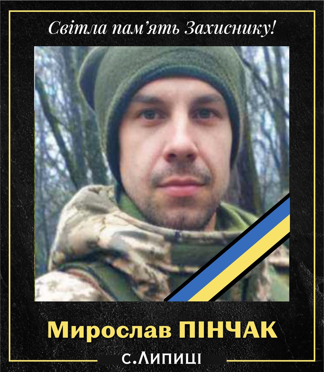 Уся Миколаївщина поринула у глибоку скорботу, готуючись зустріти свого полеглого Захисника «на щиті». До рідного дому повертається Герой Мирослав Богданович Пінчак, 1985 року народження, відважний воїн із мальовничого села Липиці. Його жертовний подвиг та незламна мужність назавжди закарбуються в серцях земляків та всіх, хто цінує свободу.Життя Мирослава Пінчака трагічно обірвалося під час виконання бойового завдання із захисту України. У липні 2024 року, під час активних бойових дій у районі населеного пункту Воздвиженка, що розташований у Покровському районі Донецької області, військовослужбовець зник безвісти. Довгі місяці тривала болісна невизначеність, але у червні 2025 року, після проведення необхідних процедур, тіло воїна було ідентифіковано, і він офіційно визнаний загиблим. Ця сумна звістка стала великим ударом для його родини, друзів та всієї громади Миколаївщини.Мирослав Пінчак був одним з тих, хто без вагань став на захист своєї Батьківщини, демонструючи приклад справжнього героїзму. Його відданість військовому обов’язку, відвага та готовність пожертвувати найціннішим заради майбутнього України заслуговують на найвищу повагу. Кожен загиблий військовий залишає по собі порожнечу та невгамовний біль, але водночас стає символом незламності та національної єдності. Його світла пам’ять буде вічною.Від імені всієї громади та небайдужих українців ми висловлюємо щирі та глибокі співчуття родині, близьким та побратимам Героя Мирослава Пінчака. Нехай вони знайдуть сили пережити цю невимовну втрату. Його подвиг – це вічний заклик до пам’яті та поваги. Він навічно залишиться в строю, як символ незламності українського духу. Вічна пам’ять і слава воїну, який віддав життя за нашу свободу.Траурний кортеж, що супроводжуватиме тіло полеглого Захисника, прибуде до Миколаєва завтра, 27 червня, орієнтовно об 11:15 годині. Місцем зустрічі для вшанування пам’яті та прощання з Героєм обрано територію біля фігури Матері Божої. Це місце стане точкою збору для всіх, хто бажає віддати останню шану. Звідти кортеж продовжить свій шлях маршрутом, що пролягає через Вербіж та Ричагів, прямуючи до рідного села Липиці, де на нього чекає останній спочинок. Поховання відбудеться у с. Липиці, де громада проведе свого відважного сина в останню путь з усіма військовими почестями. Запрошуємо всіх небайдужих приєднатися до цієї скорботної події та підтримати родину у ці надзвичайно важкі хвилини. Нехай світла пам’ять про відважного сина України завжди живе в наших серцях.