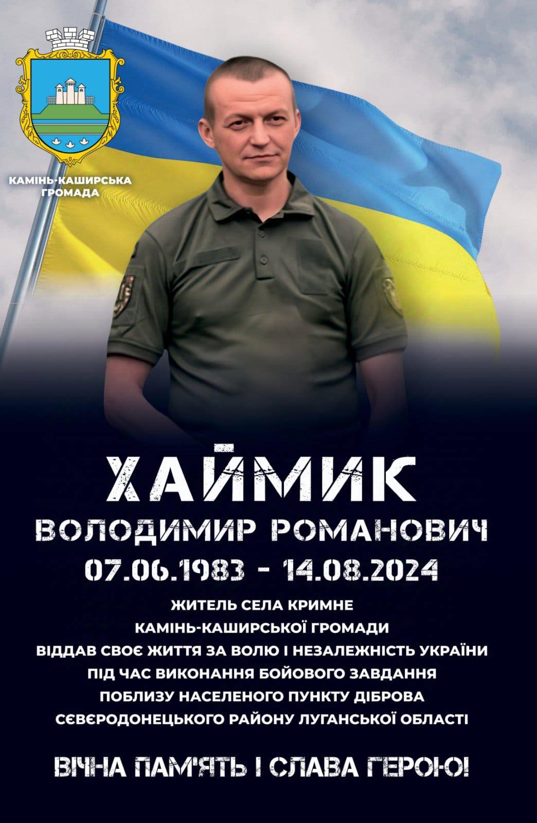 🇺🇦🕯️Минає рік, як трагічно і завчасно в бою з російськими ворогами обірвалося життя нашого хороброго воїна із села Кримне – Хаймика Володимира Романовича.