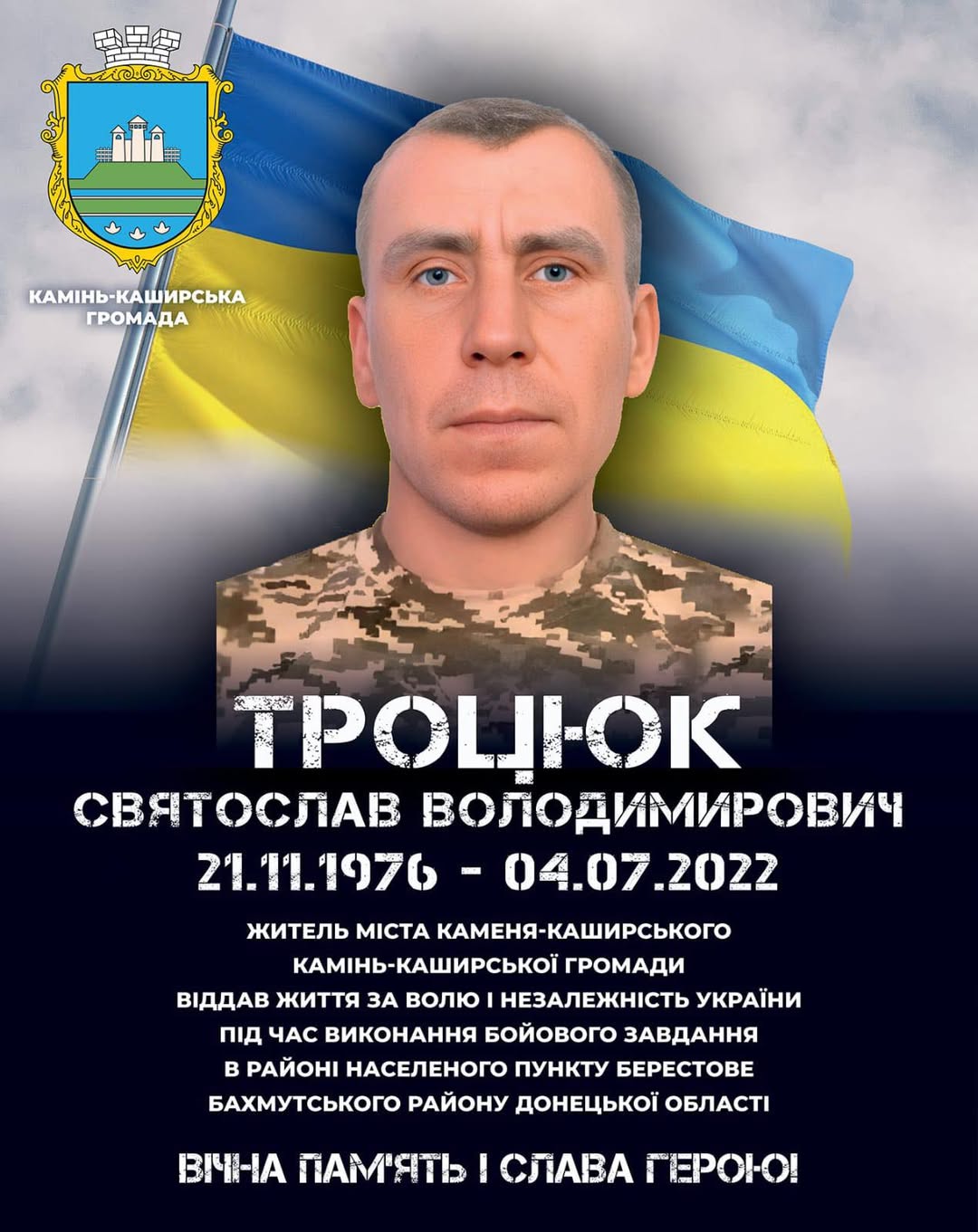 🇺🇦🕯️Минає три роки, як у Лавах небесного війська наш мужній оборонець, житель міста Каменя-Каширського – Троцюк Святослав Володимирович.