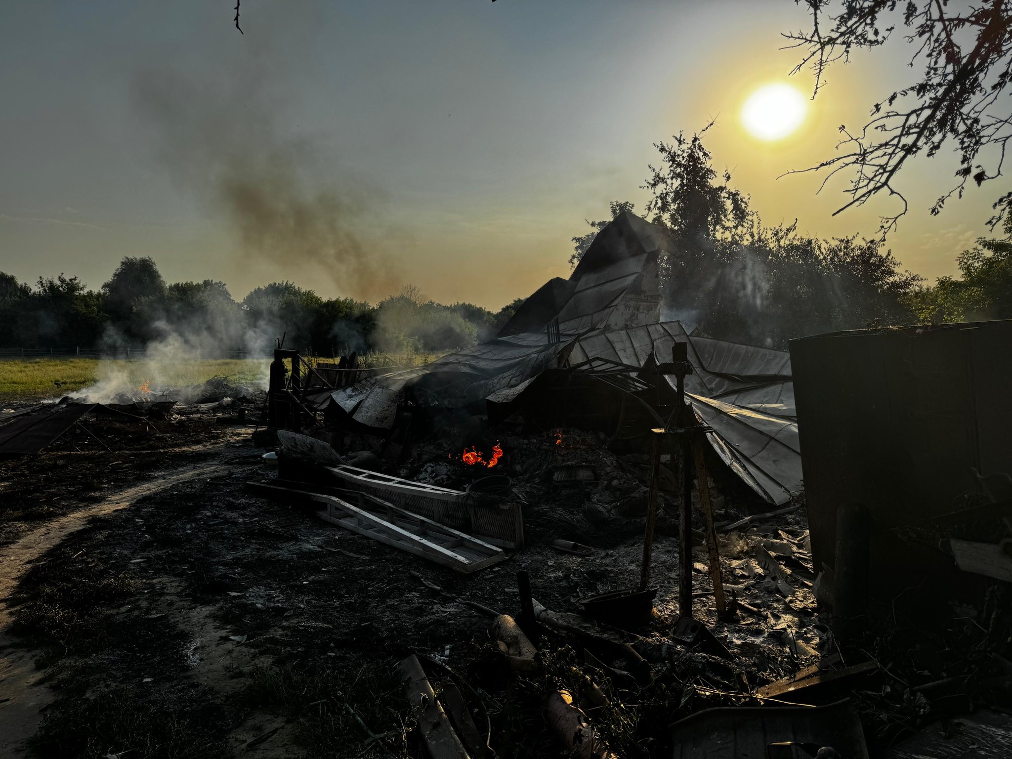 ❗️В одному із сіл громади внаслідок атаки безпілотників вщент знищені 3 будинки і господарча споруда, пошкоджені ще 6 домівок і легкова автівка.