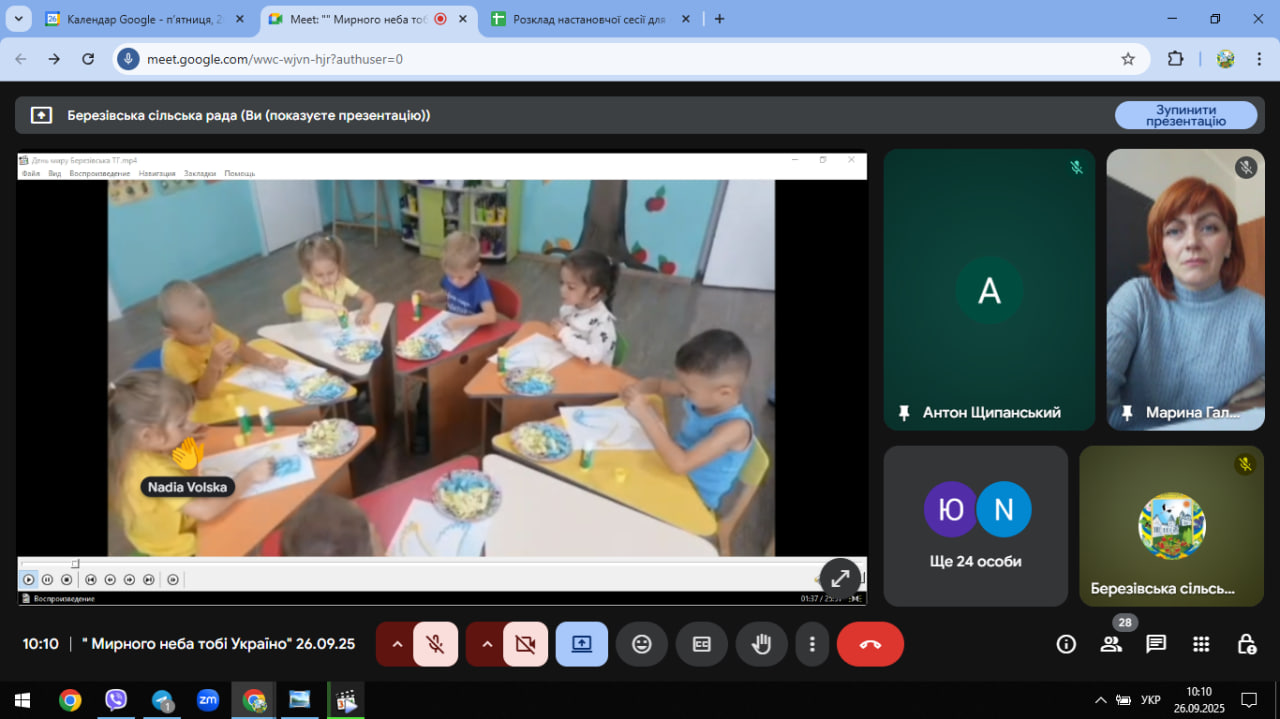 Особливим емоційним стрижнем заходу став зворушливий перегляд відеоматеріалів, підготовлених учнями та вчителями Березівської громади. На яскравих світлинах та у динамічних відео оживали найпам’ятніші моменти шкільних заходів, присвячених Дню миру. Тут були тематичні класні години, створені власноруч малюнки, плакати та аплікації, а також символічна акція «Білі журавлики миру», де дитячі руки створювали витончені образи незламної надії. Діти відверто ділилися своїми найщирішими думками про те, що означає мир для кожного з нас. У цих простих, але таких глибоких словах крилася та велична правда, яка надихає боротися, вірити та ніколи не здаватися. Ми висловлюємо щиру вдячність нашим самовідданим освітянам за ретельну підготовку цих пізнавальних заходів та активну, небайдужу участь дітей.