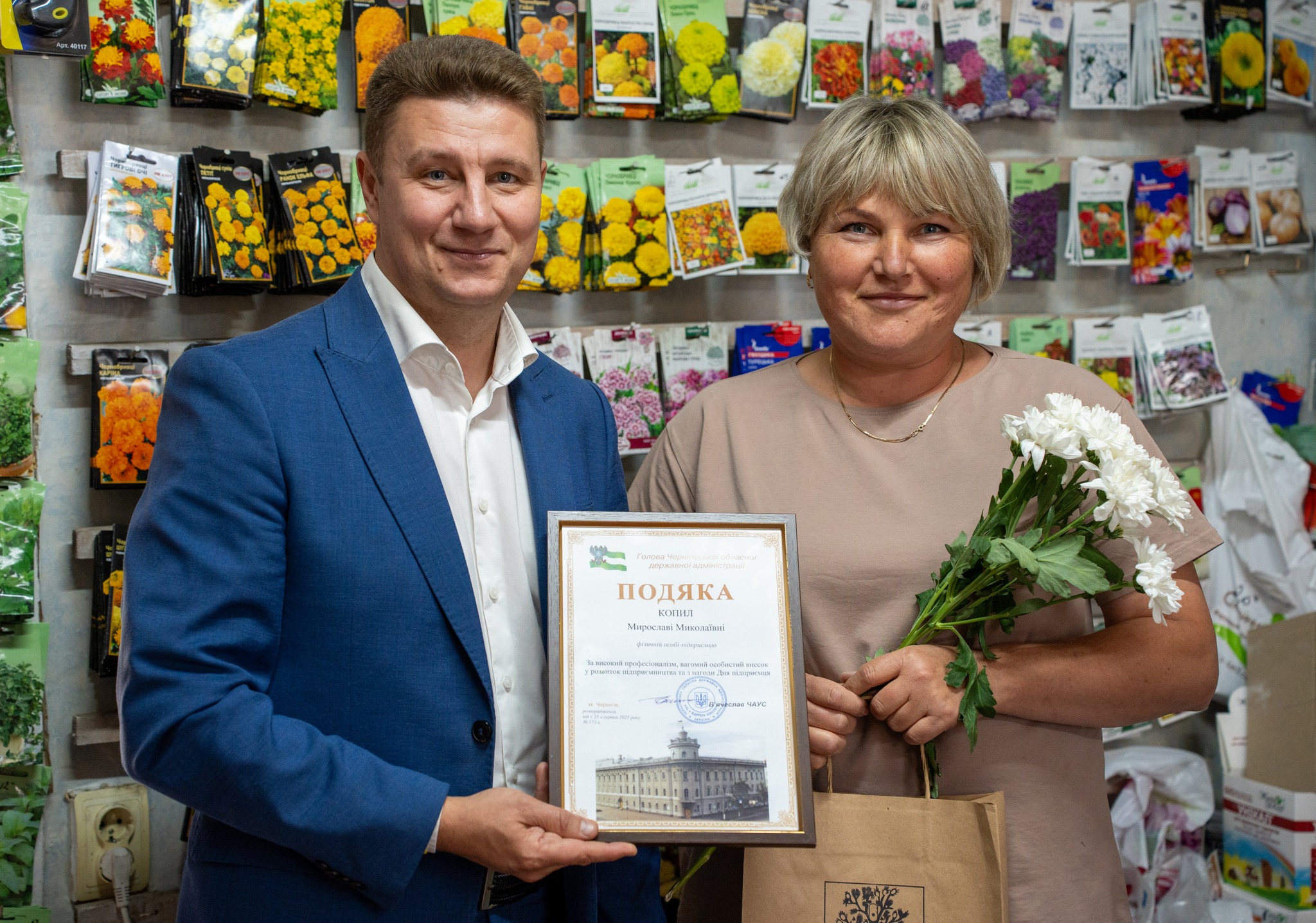 На урочистій церемонії, що відбулася з нагоди Дня Сосниці, нагороду Мирославі Копил вручив селищний голова Андрій Портний. Він особисто привітав її з цим визначним досягненням, наголосивши на її ролі у стимулюванні підприємницької діяльності в регіоні. Пан Портний також висловив щирі побажання подальших успіхів у всіх починаннях, підкресливши, що її діяльність є надзвичайно важливою для сталого розвитку громади Сосниці та Чернігівської області загалом.