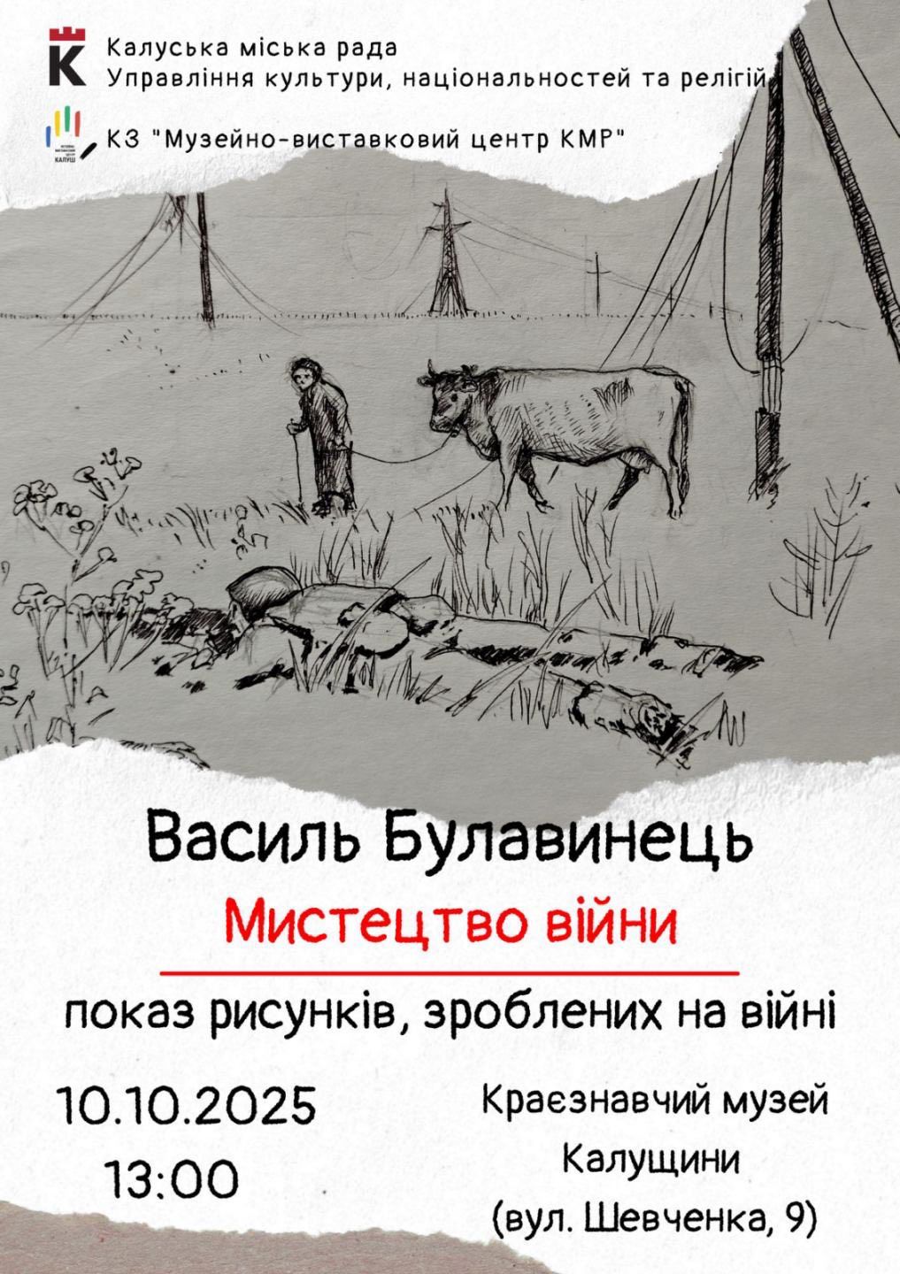 Експозиція, що презентує унікальні рисунки, створені митцем безпосередньо на фронті, розгорнеться у стінах Краєзнавчого музею Калущини. Це надзвичайна нагода зазирнути у світ художника, побачити війну його очима, відчути силу мистецтва, яке народжується навіть у найскладніших обставинах. Музей знаходиться за адресою: вул. Т. Шевченка, 9.