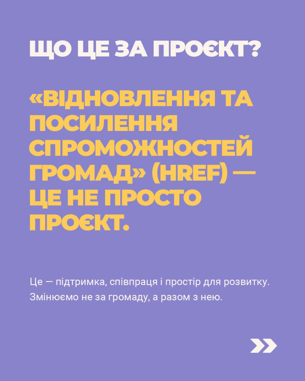 Ми віримо, що громади мають сили для відновлення — а ще більше вони можуть, коли поруч є підтримка 💛. Саме для цього ми запустили проєкт «Відновлення та посилення спроможностей громад» (HREF).