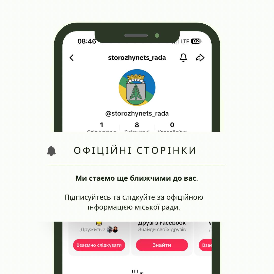 Для зручності та покращення комунікації з мешканцями Сторожинецької громади ми створили додаткові офіційні сторінки у соціальних мережах.