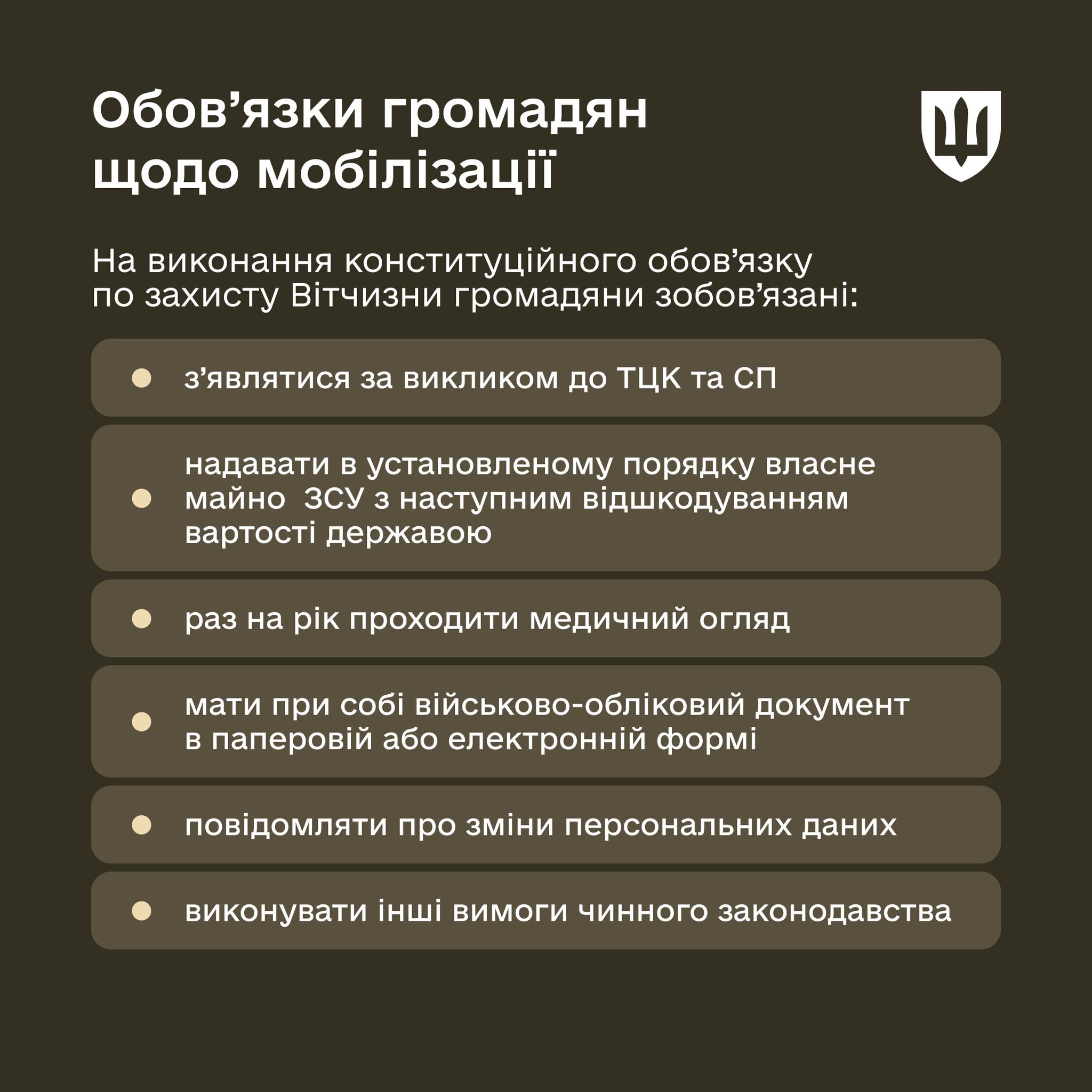 ⚡️Обов’язки громадян щодо мобілізації