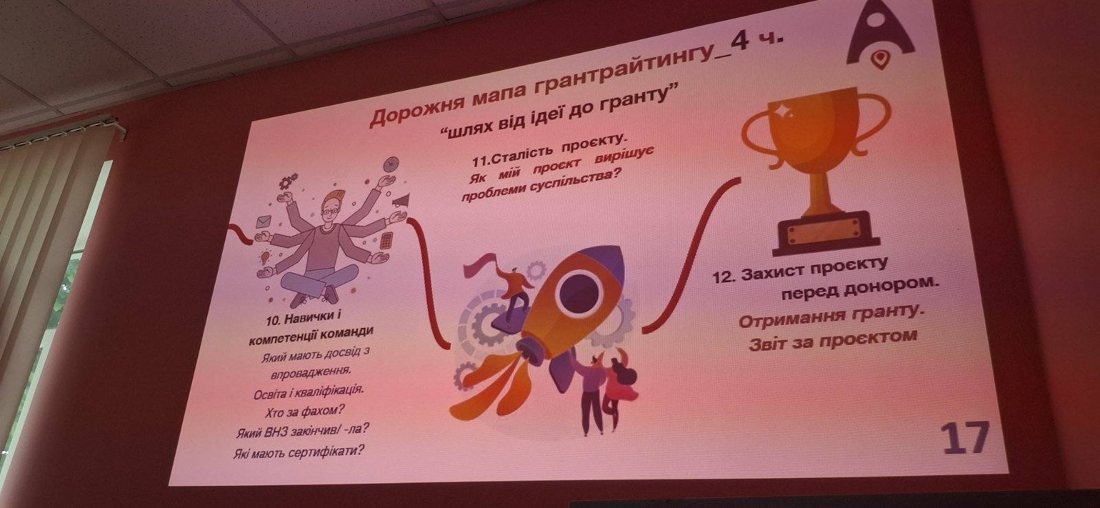 🗒На тренінгу фандрейзерка Альона КУРОВСЬКА (@https://www.facebook.com/helen.kurovskaja) надала визначення термінів “стекхолдери”, “грантрайтинг”, розповіла чим “проєкт” відрізняється від операційної діяльності, докладно зупинилась на “Топ 10 можливостей через гранти” та пояснила покрокові дії на авторській “Дорожній мапі грантрайтингу для ветеранів”.