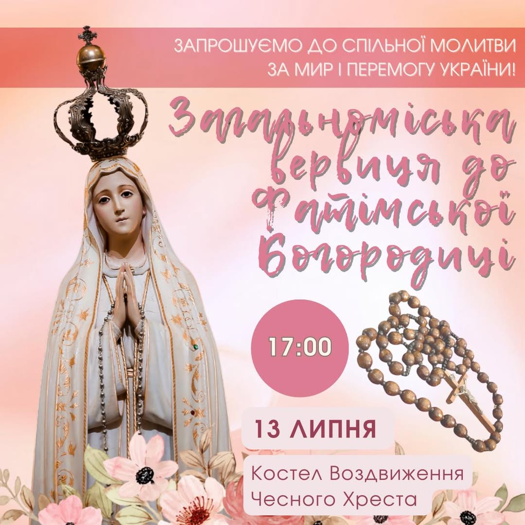 🙏 Молитовна городоцька спільнота запрошує краян 13 липня до участі у загальноміській вервиці до Фатімської Богородиці.