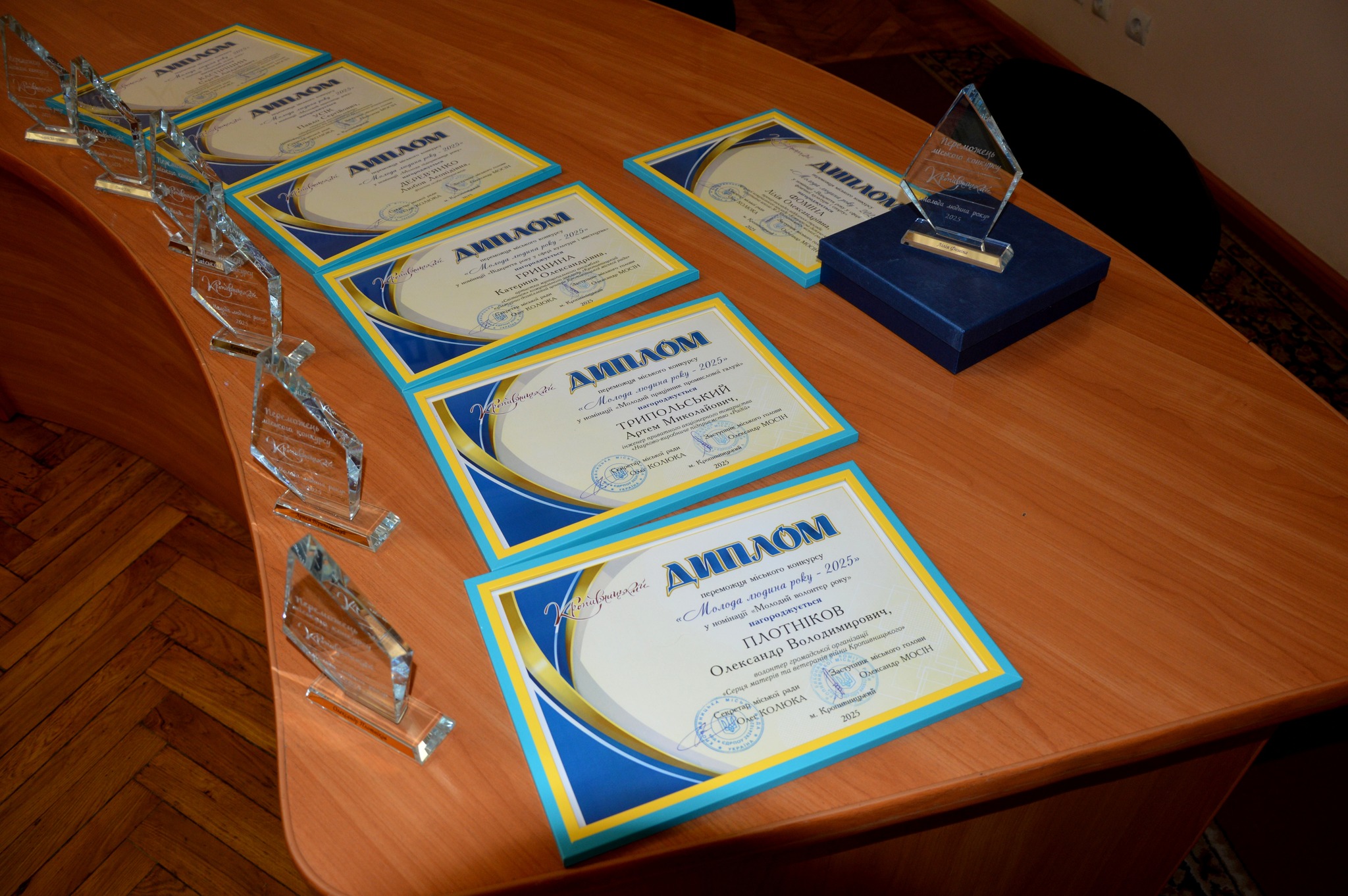 Зустріч у міській раді завершилася теплими словами подяки й підтримки, адресованими не лише переможцям, а й усій молоді Кропивницької громади — тим, хто навчається, захищає Україну, лікує, навчає інших, здобуває спортивні та мистецькі перемоги, допомагає волонтерською працею.