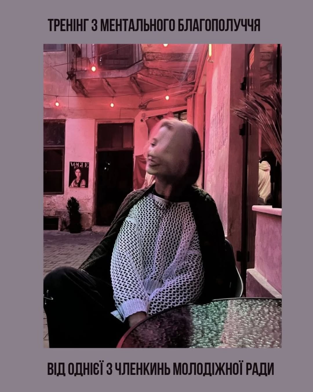 Після проходження стажування у ГО «Тінерджайзер» @teenergizer , я починаю проводити власні тренінги для молоді,тому запрошую вас 18 квітня на тренінг з «ментального благополуччя».Час та місце проведення повідомимо після реєстрації🩶»