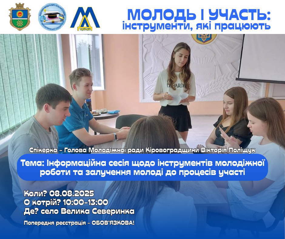 Запрошуємо активну молодь Великосеверинівської громади на інформаційну сесію, організовану Відділом освіти, молоді та спорту, культури та туризму!