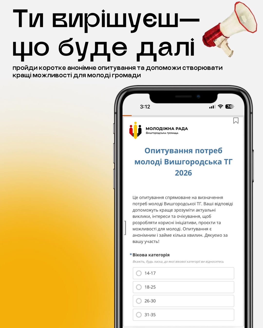 💬 Ваші думки стануть основою для рішень і змін, які ми плануємо впроваджувати для молоді міста.