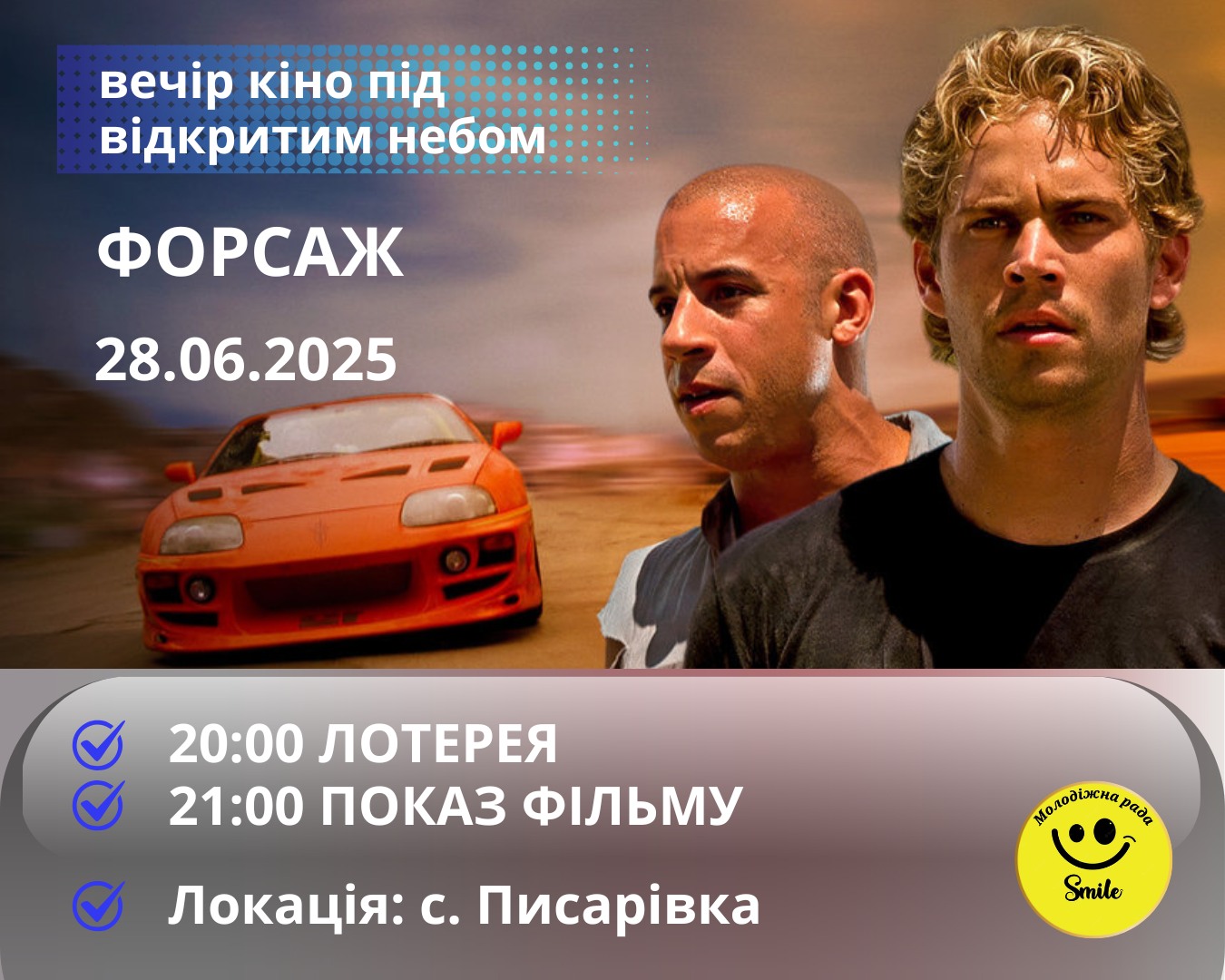🎥 21:00 — Показ фільму “ФОРСАЖ”.