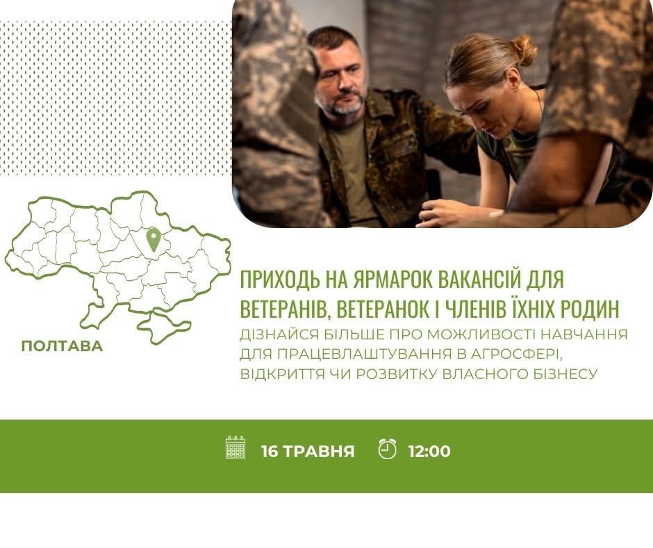 Не пропустіть свій шанс! Ярмарок вакансій для ветеранів – це ваш крок до успішної кар’єри в агросекторі.