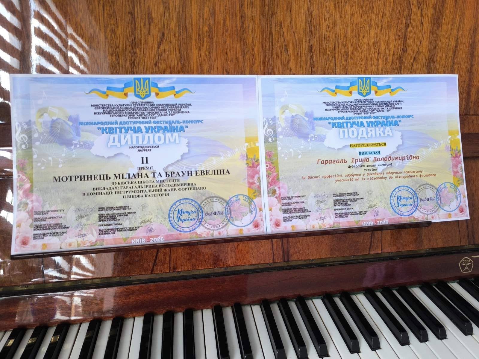 Викладач ГАРАГАЛЬ Ірина Володимирівна нагороджена Подякою за професійну підготовку учасників та вагомий внесок у розвиток музичного мистецтва.