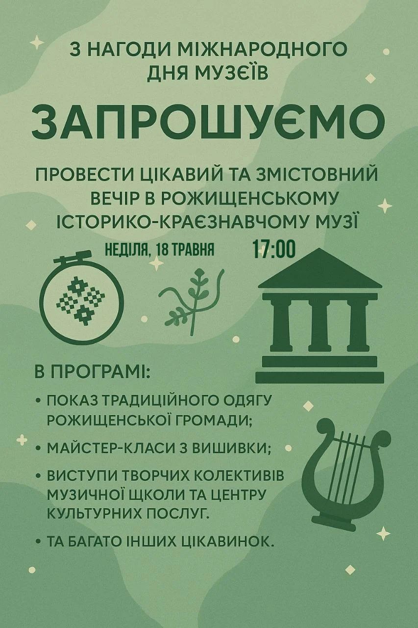 Приходьте та відкрийте для себе багатство культурної спадщини Рожищенського краю! Цей Міжнародний День музеїв стане незабутнім!