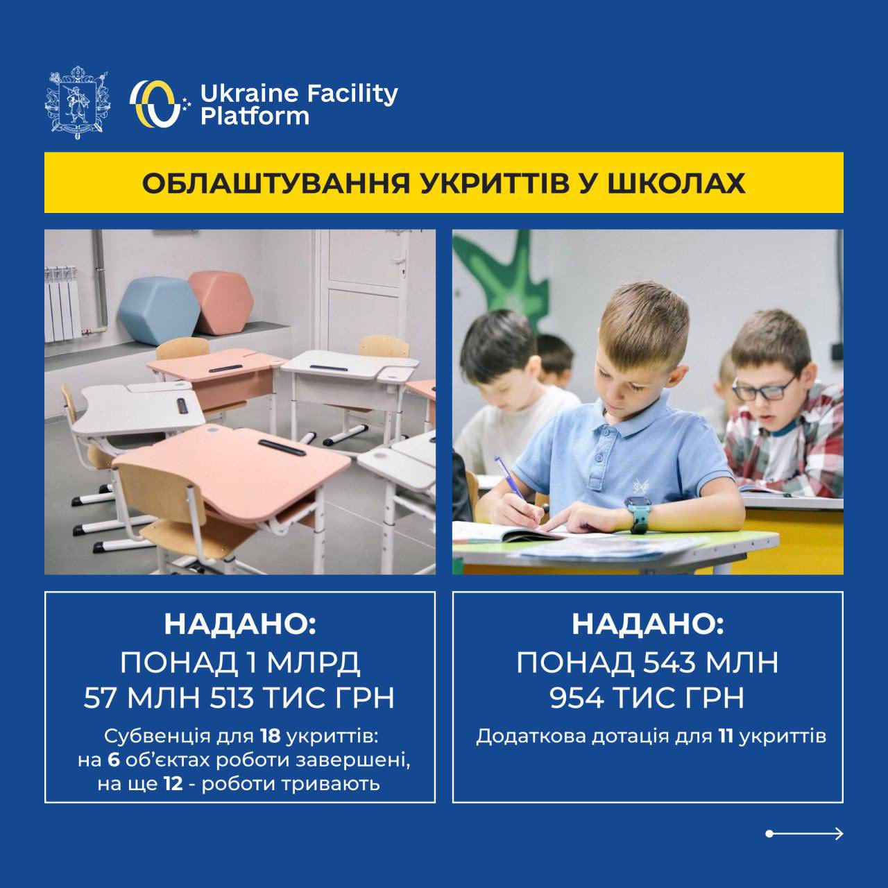 Найбільш значущим напрямом фінансової підтримки стало будівництво «підземних» шкіл. Ці безпечні освітні простори покликані забезпечити безперервність навчального процесу навіть за найскладніших обставин. На сьогодні у Запорізькій області вже функціонують 13 таких закладів, і до кінця року планується введення в експлуатацію ще 11. Це значний крок уперед для забезпечення безпеки тисяч дітей.