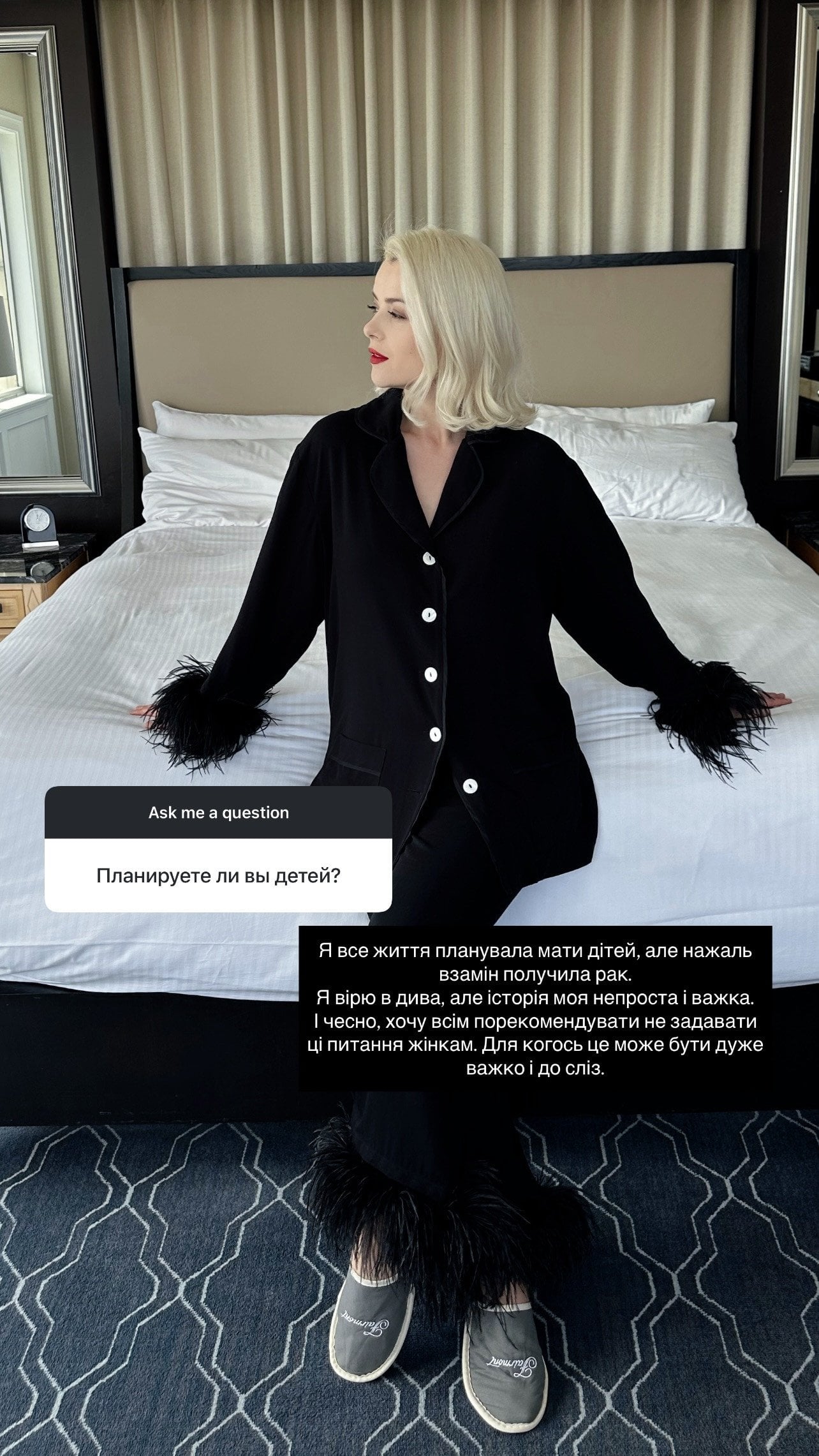 “Я все життя планувала мати дітей, але, на жаль, в обмін отримала рак. Я вірю в дива, але історія моя непроста і тяжка. І, чесно, хочу всім порекомендувати не ставити ці запитання жінками. Для когось це може бути тяжко і до сліз”, – відверто поділилася Міка Ньютон.