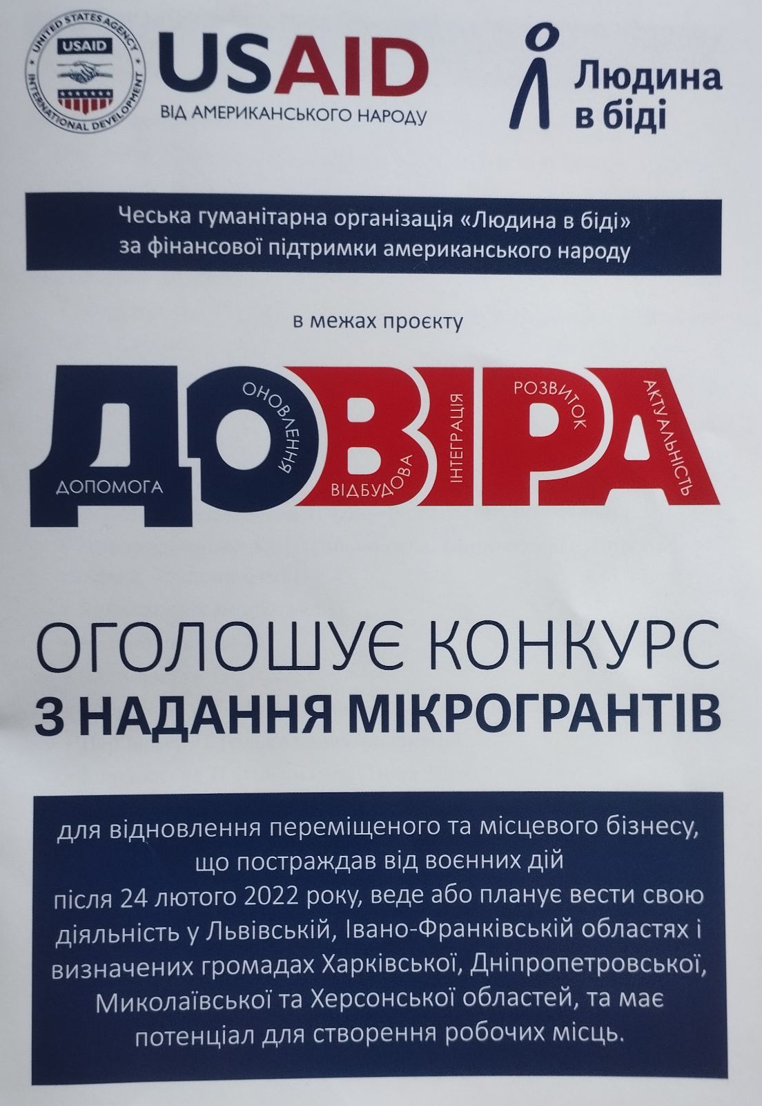 Цей проєкт «Довіра» має на меті надання грантів для відновлення постраждалого бізнесу, а також для стимулювання підприємців, які бажають розпочати свою діяльність з нуля. Учасники зустрічі мали змогу не лише дізнатися про всі деталі програми, а й пройти попередню реєстрацію для подальшої участі. Така можливість є надзвичайно цінною для локальних економік та стійкості громад.