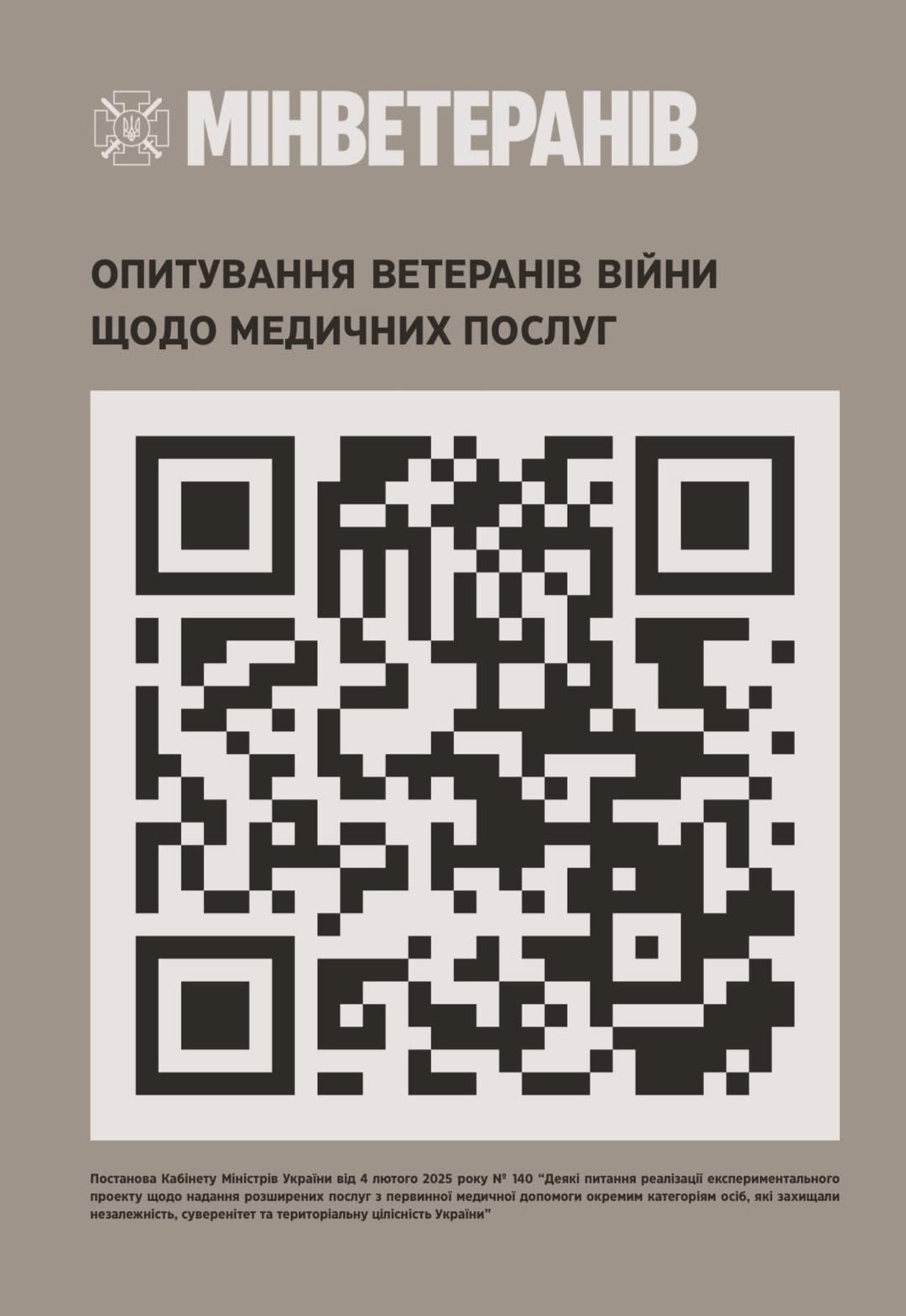 Кожна ваша відповідь має величезне значення і робить реальний внесок у процес покращення. Дозвольте нам разом створити систему медичної допомоги, яка по-справжньому відповідає потребам наших ветеранів, забезпечуючи їм належний рівень турботи та підтримки.