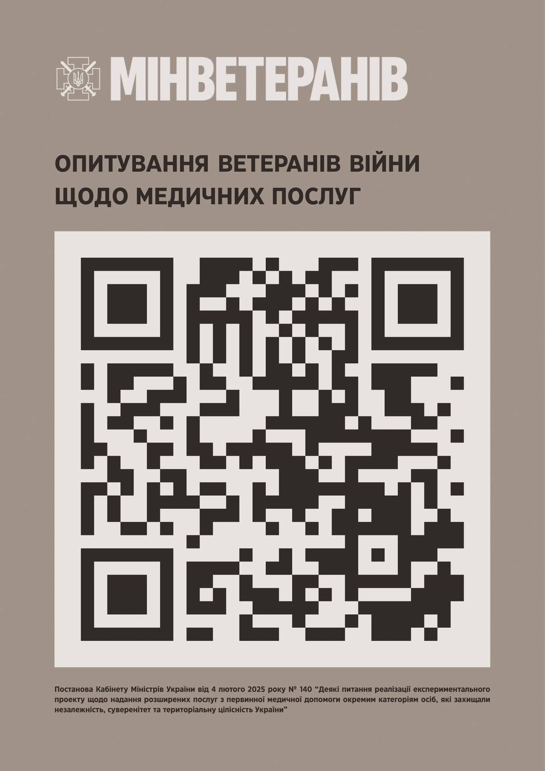 Ми закликаємо всіх ветеранів долучитися до цього важливого процесу. Ваша участь – це ваш внесок у побудову кращої системи підтримки. Нижче ви знайдете QR-код та пряме посилання на опитувальник: