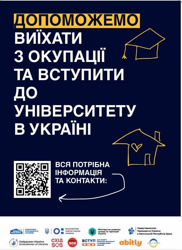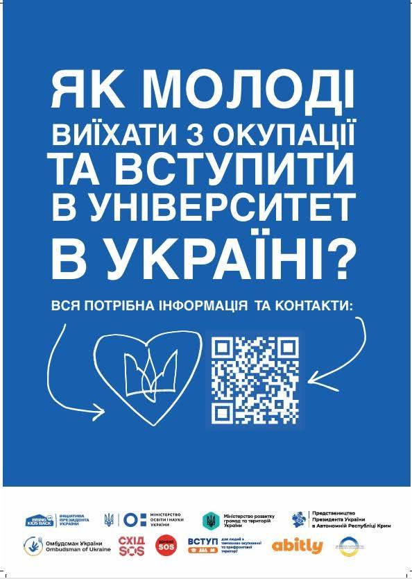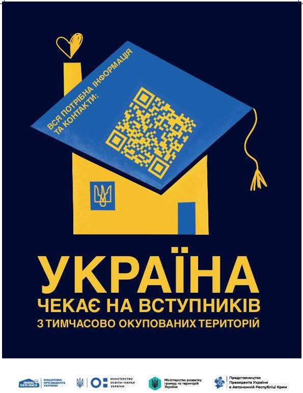 Міністерством розвитку громад та територій України спільно з ініціативою Президента України Bring Kids Back UA та іншими партнерами розроблено інформаційну кампанію щодо вступу дітей та молоді з тимчасово окупованих територій України до закладів вищої освіти.