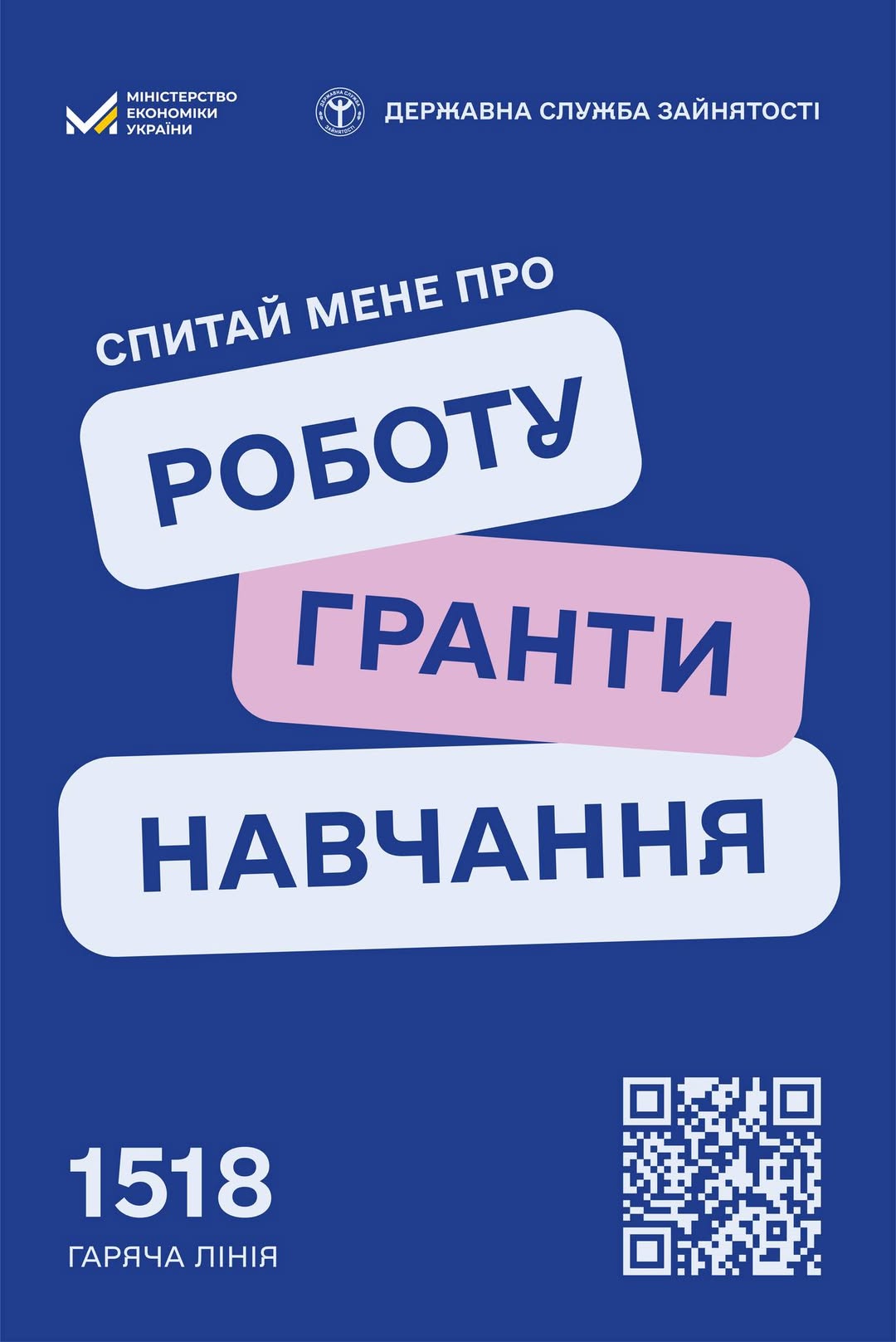 Міністерство економіки України заповаджує рекламну промоакцію «Спитай мене про: Роботу. Гранти. Навчання”. Потрібна допомога з працевлаштуванням: телефонуйте 1518