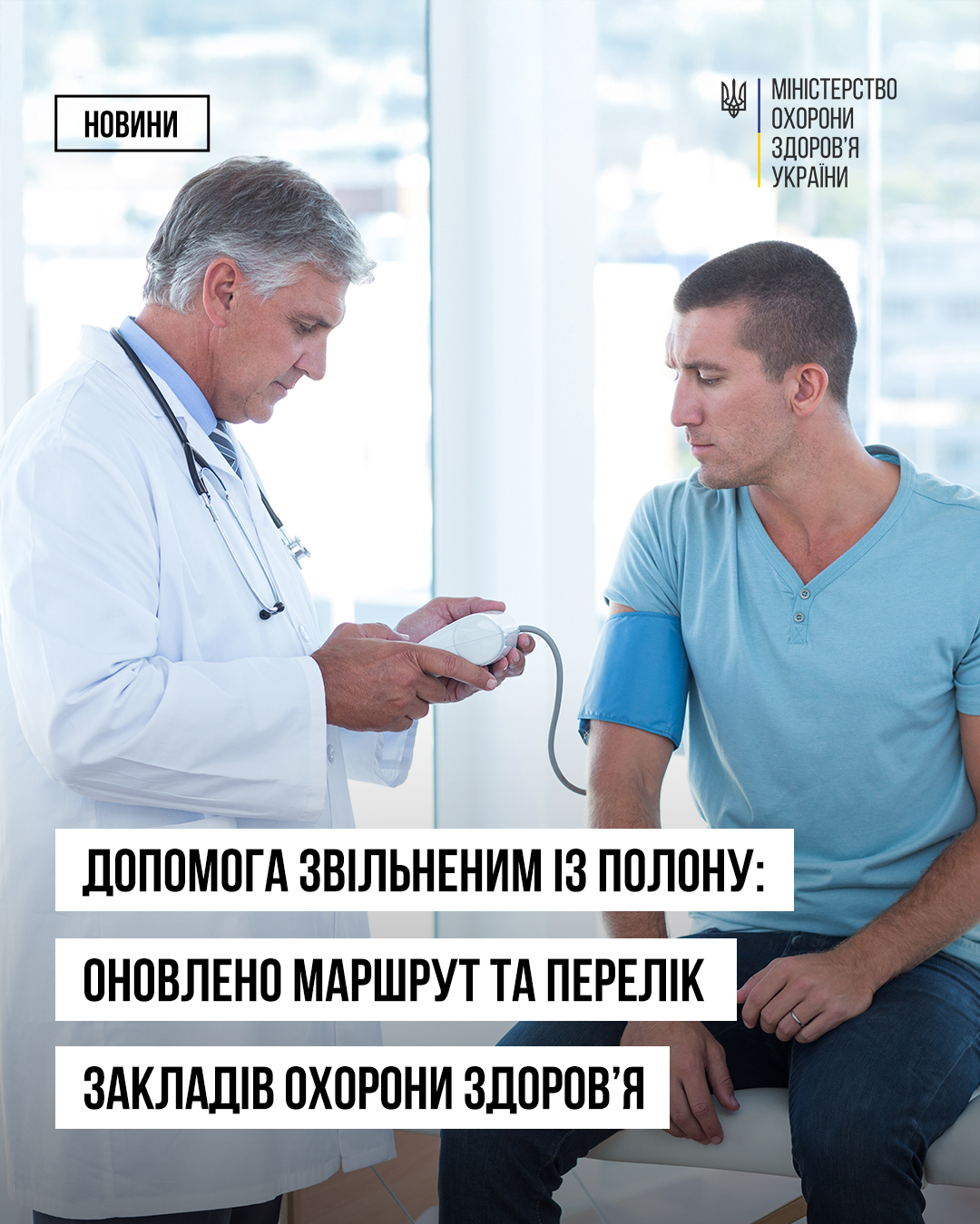 🏥 Міністерство охорони здоров’я України оновило перелік закладів охорони здоров’я, які надають медичну, реабілітаційну та психологічну допомогу звільненим із полону військовослужбовцям, поліцейським, особам рядового та начальницького складу служби цивільного захисту, а також цивільним особам.