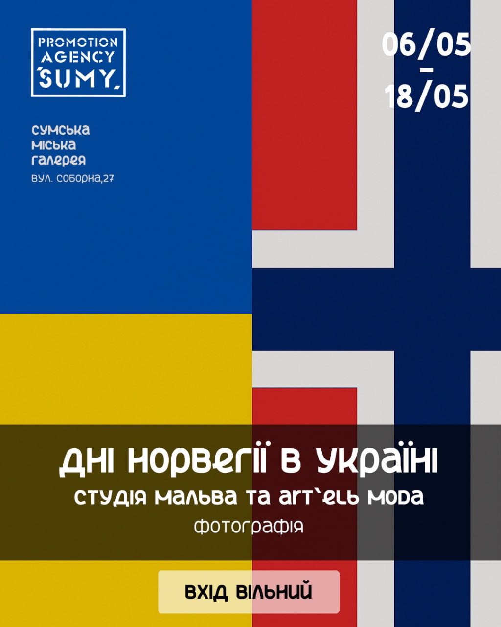 Запрошуємо вас на унікальний проєкт, створений студією “Мальва” та “ART’elь moda”. Ця фотовиставка – це діалог культур, що розкриває глибокі паралелі між історією України та Норвегії. Ви побачите, як єдність цінностей та повага до національних традицій об’єднують два народи. Відвідайте цю виставку, щоб дізнатися більше про культурні зв’язки та взаємодію між Україною та Норвегією.